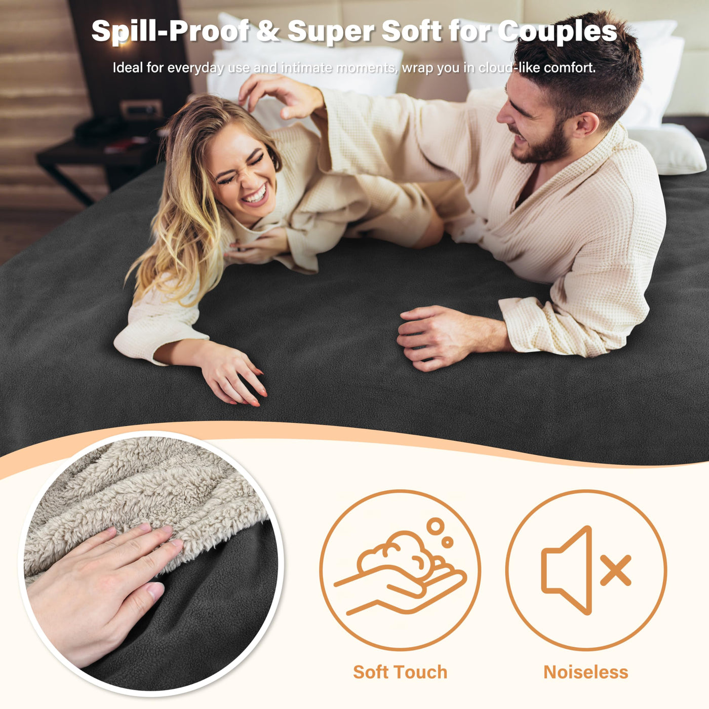 Q: Is the Catalonia Waterproof Blanket truly waterproof?A: The Catalonia Waterproof Blanket features a waterproof coating inside that effectively prevents liquid from leaking through to protect your couch, bed, or other surfaces. However, the surface fiber itself is not waterproof, which allows for a soft and comfortable touch.