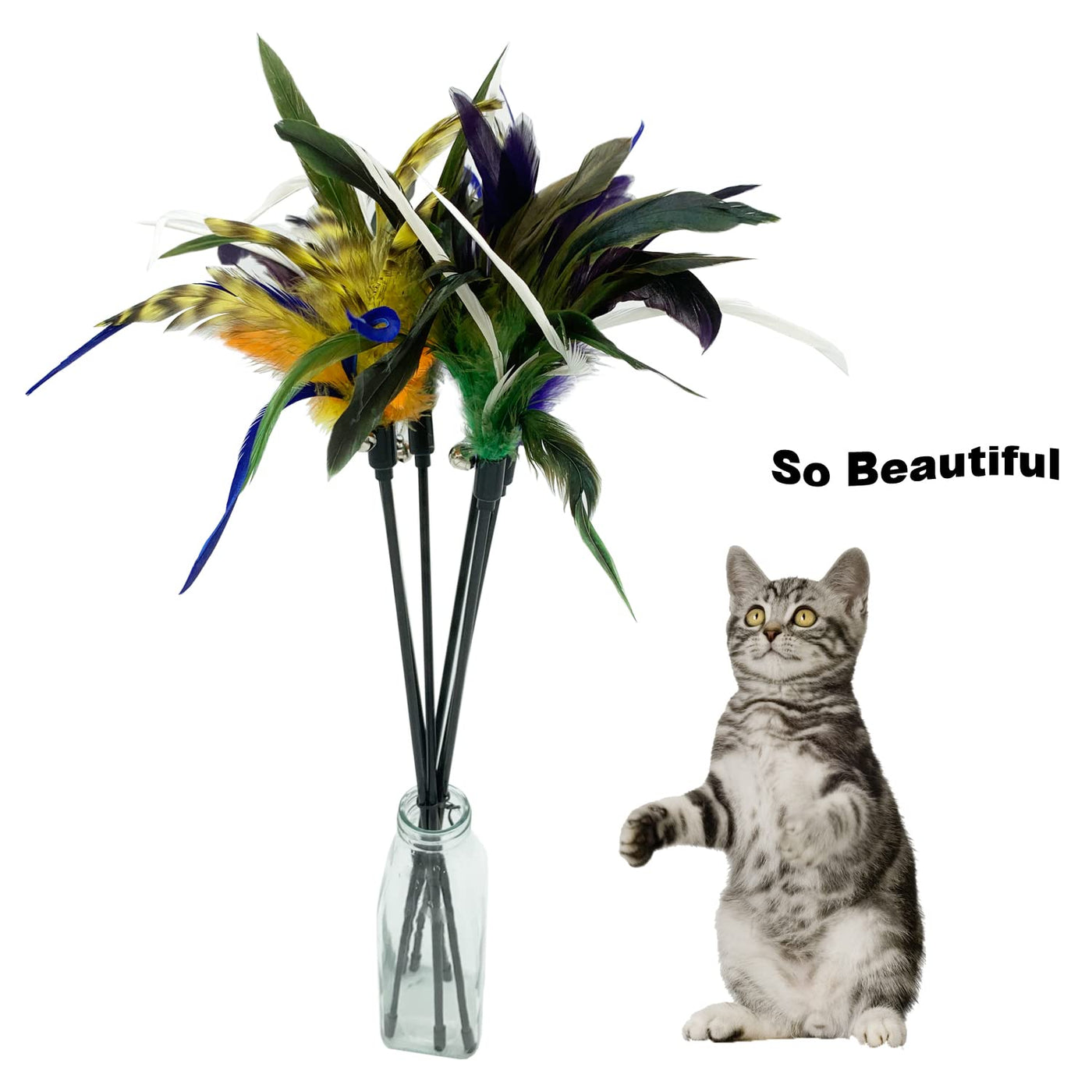 Cateness Cat Wand Toy Feather Stick Cat Toys, 6 Pieces Interactive Cat Toy Feathers Wand For Indoor Cats (C)