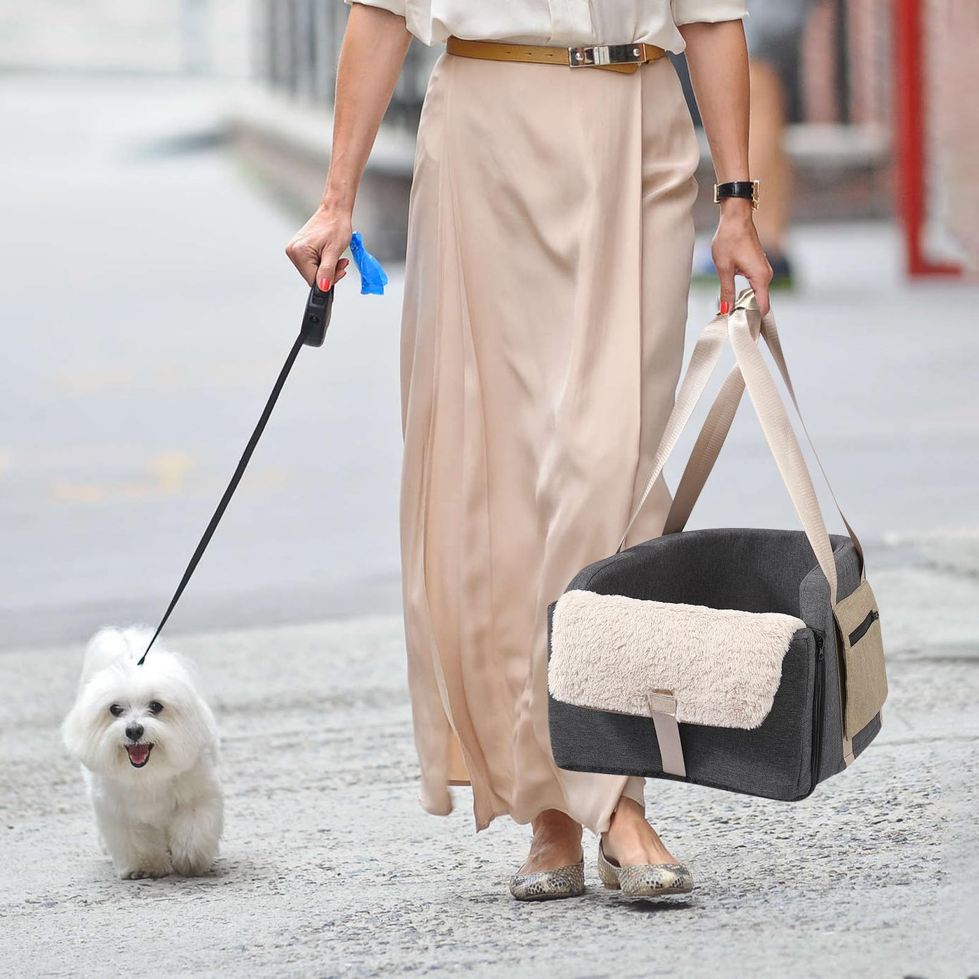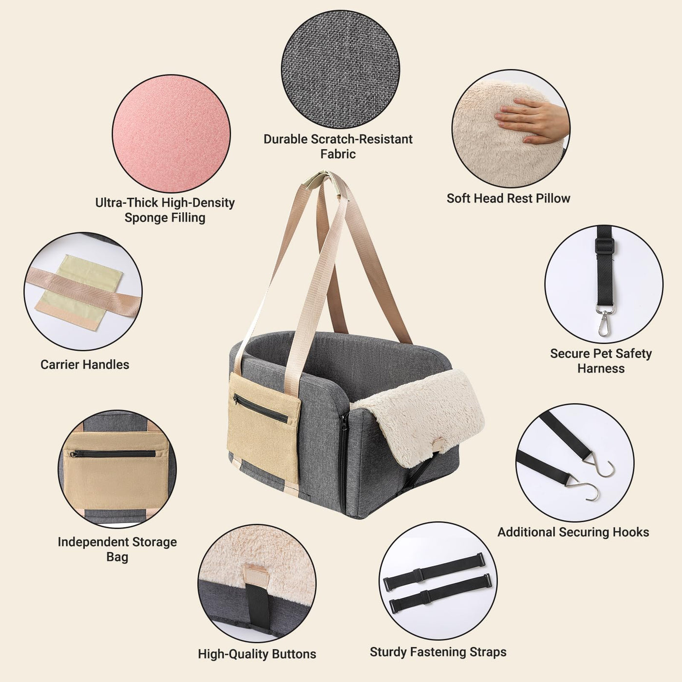 Q: Is the material of the dog car seat safe and comfortable for my pet?A: Yes, the dog car seat features a high-density environmental sponge for comfort and a durable blended linen cover, providing a safe and cozy space for your pet during car rides.
