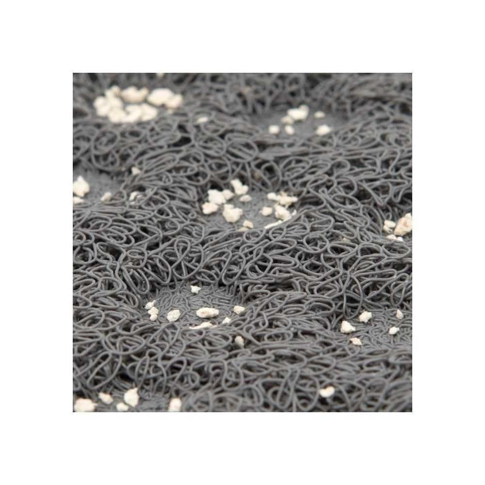 Q: How does the Catit Cat Litter Mat prevent litter tracking?A: The Catit Cat Litter Mat features a textured surface designed to effectively trap loose litter, minimizing tracking throughout your home. This unique design helps keep your floors clean by capturing litter as your cat exits the litter box.