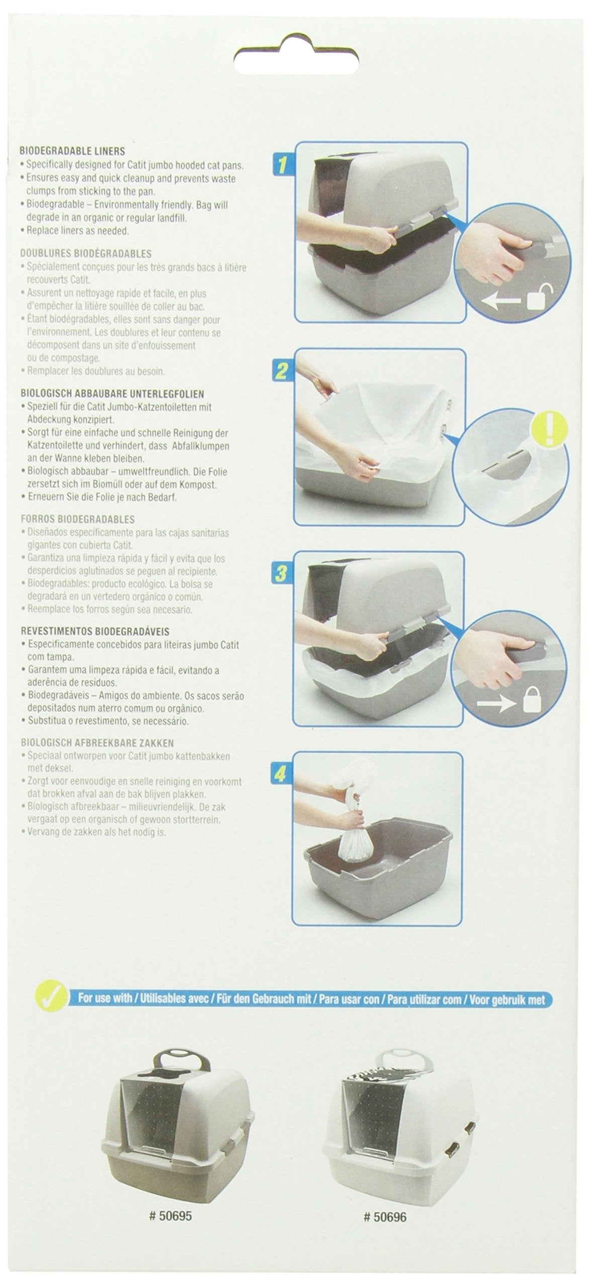 Q: Are the Catit Replacement Liners compatible with other litter boxes?A: The Catit Replacement Liners are specifically designed for Catit Jumbo Hooded Cat Litter Pans, ensuring a perfect fit. For other litter boxes, it is recommended to check the dimensions and compatibility before use.