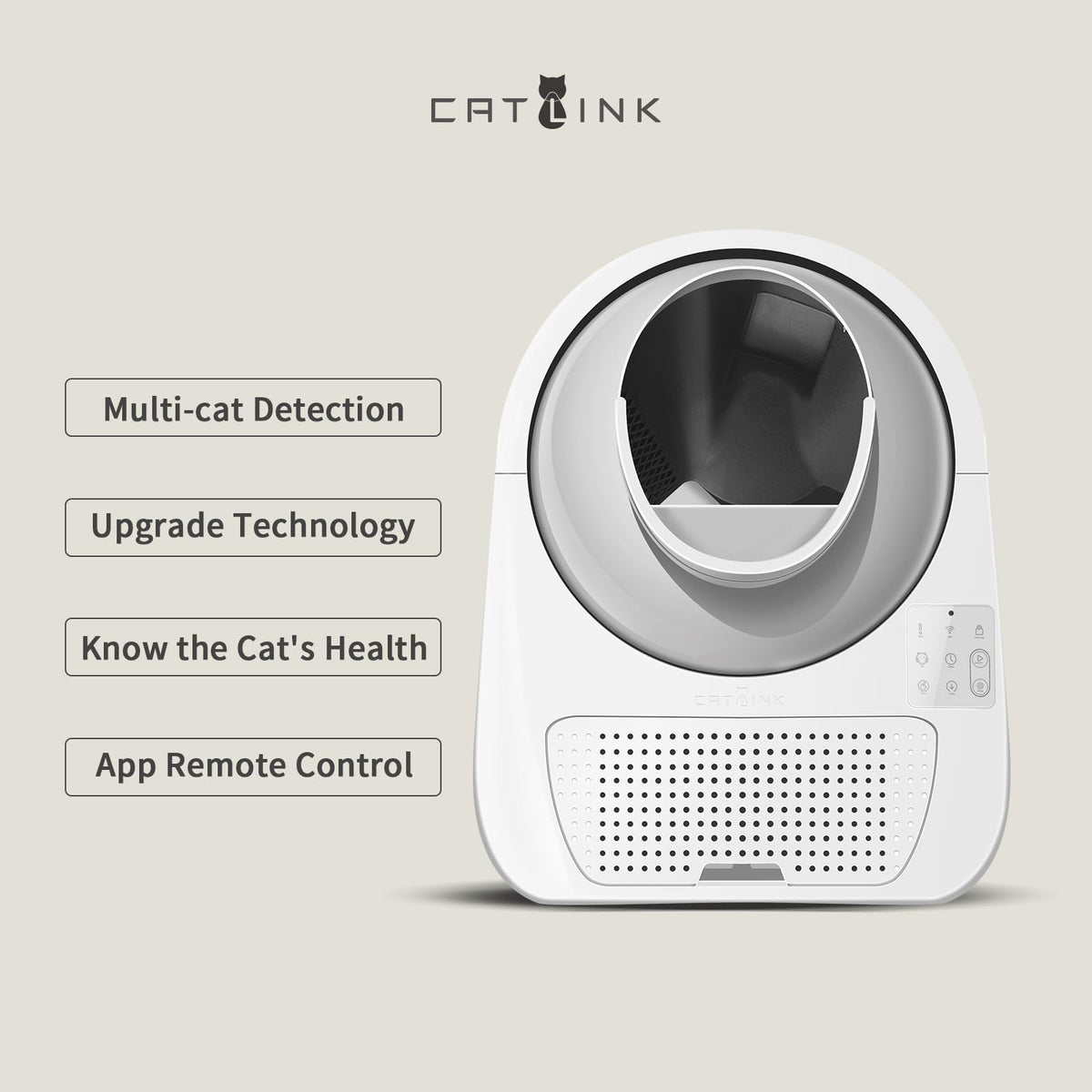 Catlink Self Cleaning Automatic Litter Box For Cats 3.5~22Lbs-App Control,Double Odor Removal-Extra Large With 40 Liners&1 Carbo