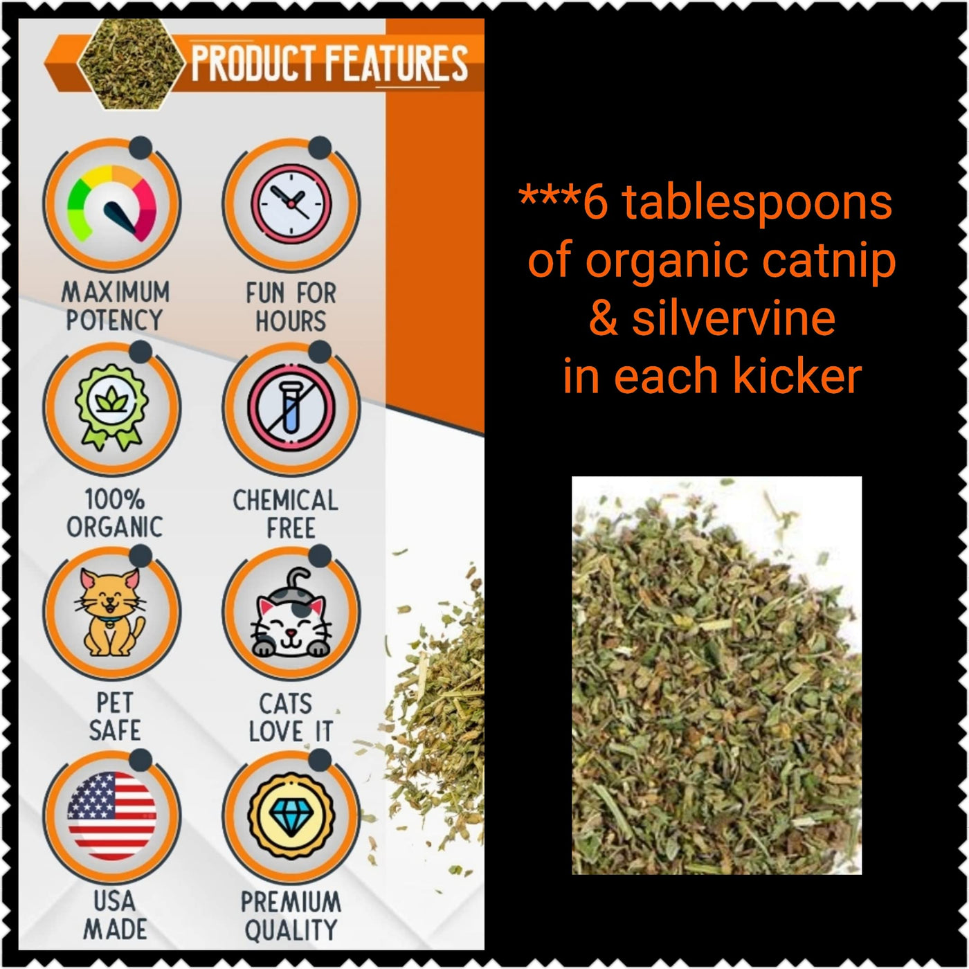 ***Two Catnip Kicker Toy, 15'.These Kicker Toys Are Handcrafted In The Usa By A Family Of Cat Lovers And Cat Rescuers. This Is A Highly Stimulating Cat Kicker Toy Set Great For Medium And Large Size Cats. These Kickers Are Brightly Assorted Fabric Patterns That Are Fun And Gender Neutral Distributed At Random Frrom A Selection Of 20 Fabric Patterns. Each Kicker Has 6 Tablespoons Of Organic Catnip+Silver Vine Inside Together With The Poly-Fiber Stuffing. However, Because The Catnip Aroma May Become Faint With Time, It Is Recommended To Rub Some More Catnip Against The Toy To Renew The Aroma Of Catnip This Way Your Beautiful Fur Baby Will Enjoy This Kicker Longer. ***This Toy Is Great For Busy Pet Parents To Give To Their Fur-Babies For Self-Entertaining Playtime. Size Of Kicker Is Approximately 15' X 2.25' Each. This Toy Is Also Great For Cats Needing To Engage In Extra Physical Activity, While Helping Them Maintain A Healthy Weight. However, Cats Are Picky So Just Like Any Other Cat Toy, It Can Be A Hit Or Miss. It Helps If You Know Your Cat Likes Catnip Ahead Of Your Purchase. * ***Recommendations: Rub More Organic Catnip Onto The Toy And Let Your Pet Play. At The End Of The Day Or Use, Put Toy Away For At Least A Day Or Two. Cats Are Easily Bored Of Using The Same Toy Everyday. When They Do Not See Or Play With A Specific Toy For A Few Days, And You Take The Toy Out, They Behave Excited To See Their Toy Again. ***We Recommend Regular Nail Clipping Your Pet To Avoid Ripping Toy Seam Or Fabric Apart And Ensuring Toy Longevity. ***Also, Please Reseal Kicker Toy In A Zip Bag After Every Use, To Extend The Longevity Of The Catnip/Silver Vine Aroma.