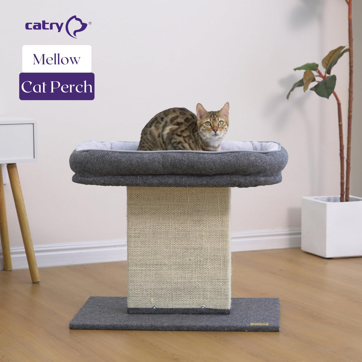 Catry 19'' High 2-In-1 Elevated Cat Perch With Large Soft Felt Bed, Wide Sisal Scratching Post, Minimalist Cat Furniture For Cli
