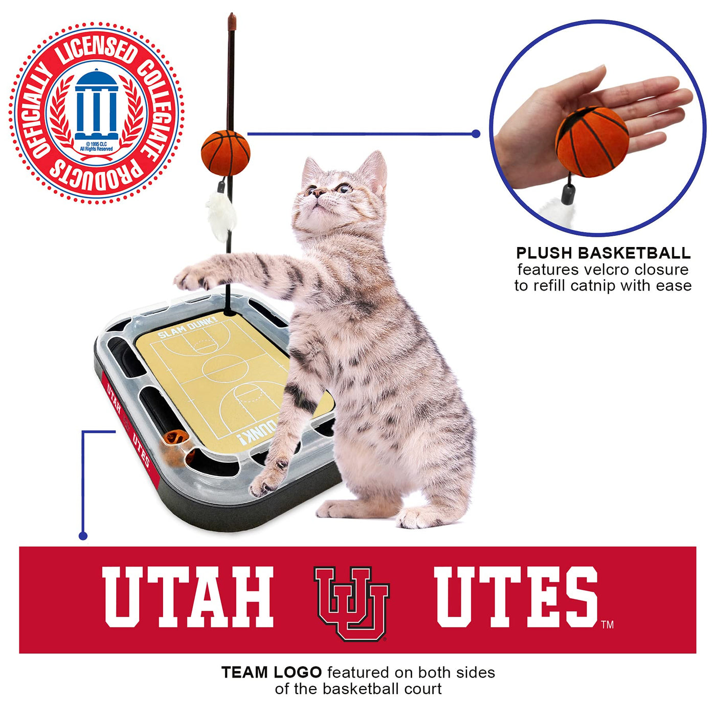 Cats Scratcher Ncaa Utah Utes Basketball Court Cat Scratcher With Catnip Filled Plush Basketball & Feather Toy Hanging, Jingle B
