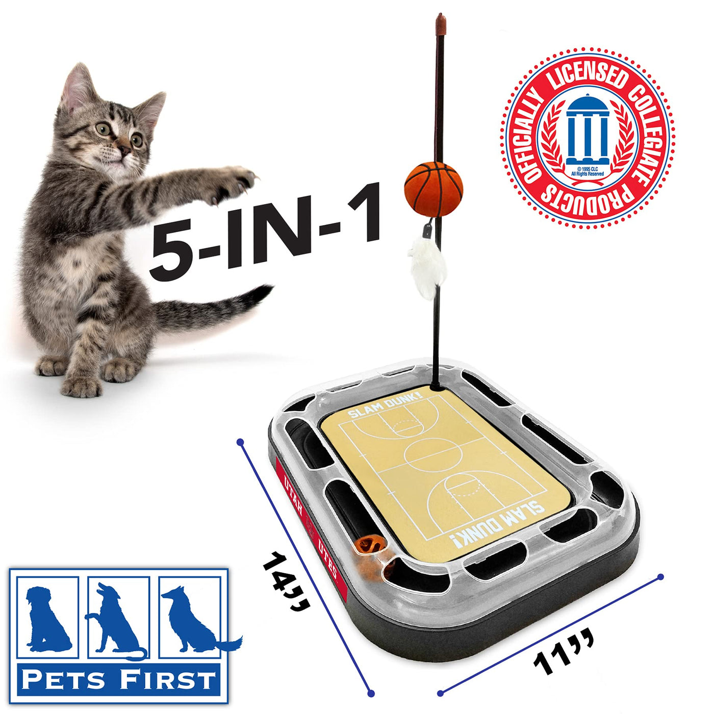 The All New Pets First Collegiate Cat Scratching Toy!While You Might Already Have Some Cat Toys & Accessories Such As The Petstages Cat Tracks Or The Bergan Turboscratcher Or The Smartykat Catnip Toy Etc. . . When You Need A Cat Toy To Fulfill Your Basketball Craves, While Also Being A Total Blast For Your Cat, This Is The Toy You Want.There Are So Many Ways To Keep Your Cat Satisfied While Getting A Kick Out Of The College Basketball Stadium Motif.Great As A Gift Too!This Cat Toy Will Have Your Kittens Play Basketball, Punting And Scratching Up The Field.The Rolling Cat Toy Ball With Bell Inside The Cat Tracks Around The Field Is A Wonderful Chase Toy That Cats Love To Poke At.Dont Forget The Field Is Adorned With Your Favorite Team On The Sides.When You Envision A Scratch-Board You Never Picture A Basketball Field And That Is What Pets First Has Delivered Here. For You!This Emerald Basketball Field Is As Tough As Your Average Basketball Player. Its Designed To Be Tough Enough To Take What Your Cat Can Bring To The Fight. Dont Give Your Cat A Weak Flimsy Scratch Toy, Give Them An Ncaa Licensed Basketball Field Of Scratchboard.Many Cat Toys On Amazon Have A Ball Chasing Gimmick But This Ball Makes Noise And Has Several Windows In The Frame For Your Cat To Swipe At And Push Around. This Ball Cant Be Removed So Its Always With Your Toy And Not Loose Around Your Floor.The Question Isnt Will Your Cat Be Entertained But More Likely Will You Be Able To Keep Them Away From This Incredible Ncaa School Licensed Basketball Cat Toy.One Of The Many Unique Parts To This Toy Is The Refillable Catnip Basketball Toy With The Feathers Attached.This Basketball Will Know Pain, When Your Cat Sets Its Sights Upon It. Since The Plush Basketball Can Be Filled And Refilled With Catnip, Your Cat Will Never Stop Having Fun. Catnip Is Included!The White Feathers Attached Are There For Extra Flair For Your Cat To Have Even More Stimulation. If Youre A Basketball Fan And A Cat Owner Or If You Have A Friend Who Is And Has A Cat Look No Further. You Have Found The Ultimate Interactive Cat Toy For The Ultimate Fan.Another Amazing Feature That Was Designed For This Cool Cat Toy Is The Reversible Cardboard!Our Reversible Basketball Felt Can Be Switched To A Cardboard Cat Scratcher So That Your Cat Can Scratch On The Cardboard While Not Having To Scratch The Beautiful Basketball Court! Alternatively, It Can Scratch On Both Sides! Wow!This Is The #1 Cat Toy! The #1 Cat Scratcher!Teams:This Cool Cat Toy Comes In Most Hot College Ncaa Teams, Here Are Just A Few To List: Boston College, Missouri, Arkansas State, Florida International, Central Michigan, Iowa State, Florida Atlantic, Massachusetts, California, Northwestern, Notre Dame, Iowa, Boise State, Arizona State, Wyoming, Memphis, Ohio, Toledo, Pittsburgh, Uab, Tulsa, Oregon State, Mississippi State, Lsu, Texas, Syracuse, Virginia Tech, Eastern Michigan, Nevada, Fresno State, Penn State, Arizona, South Carolina, Marshall, Texas State, Alabama, Army, Rutgers, Stanford, Auburn, Oklahoma, Akron, Cincinnati, Tcu, East Carolina, Georgia Tech, Georgia, Utah State, Georgia State, Rice, Temple, Tennessee, Unlv, Northern Illinois, Louisiana Tech, Michigan, West Virginia, South Alabama, Bowling Green, Illinois, Byu, Oklahoma State, Ole Miss, Old Dominion, Purdue, Air Force, San Diego State, Wake Forest, Charlotte, Utep, Nc State, Usc, Wisconsin, Kansas State, Buffalo, Vanderbilt, Connecticut, Georgia Southern, Baylor, Washington, Michigan State, Ul-Lafayette, New Mexico State, Texas A&M, Maryland, Hawaii, Navy, Ul-Monroe, Western Kentucky, Utah, Duke, Idaho, Miami-Fl, South Florida, Clemson, Minnesota, Troy, Central Florida, Ucla, North Carolina, Colorado, Indiana, Middle Tennessee, Arkansas, Nebraska, Miami-Oh, Smu, Houston, Coastal Carolina, Kent State, Kentucky, Western Michigan, Louisville, Utsa, North Texas, Appalachian State, Tulane, Ohio State, Florida State, Texas Tech, Oregon, Kansas, Florida, Washington State, Southern Miss, Colorado State, San Jose State, Virginia, New Mexico & Ball State.Need More Pet Gear?? Love Matching??While You Buy The Best & Coolest Sports Cat Toy For Your Best Friend, Why Not Buy Our Matching Pets First Ncaa Pet Gear? Ncaa Dog Collars, Ncaa Pet Bandanas, Ncaa Dog & Cat Jerseys, Ncaa Tee Shirts, Ncaa Leashes, Ncaa Beds... Buy The Whole Ncaa Pet Collection & You Are Sure To Be Ready For Another Great Win!Don'T Forget To Check Out Our Premium Training Pads, Aka The Best Puppy Pads Sold On Amazon!Choose Your Favorite Sports Team, And Add To Cart Now Before We Run Out Of Stock Again!Pets First:Pets First Company Has Established Itself As The Largest Sports-Licensed Pet Product Company In The Country.Pets First Has Gained Its Reputation In Providing Every Pet Owner With Premium Licensed Pet Products; From Unique And Colorful Apparel Items To Fun And Playful Toys And Accessories.Working With The Latest Technology, Our Creative Designers Cho