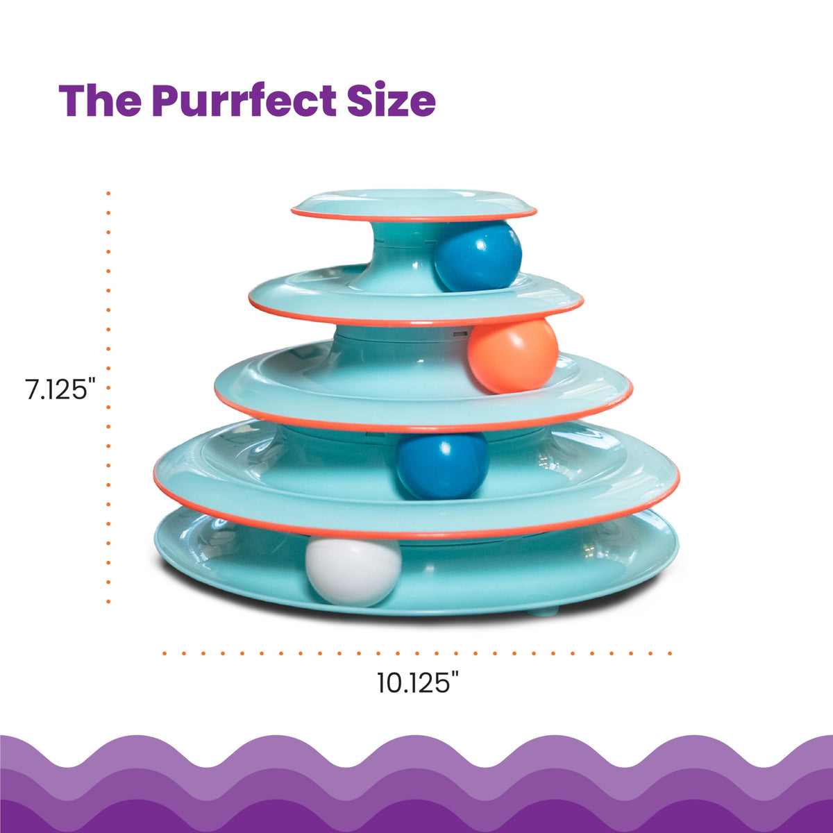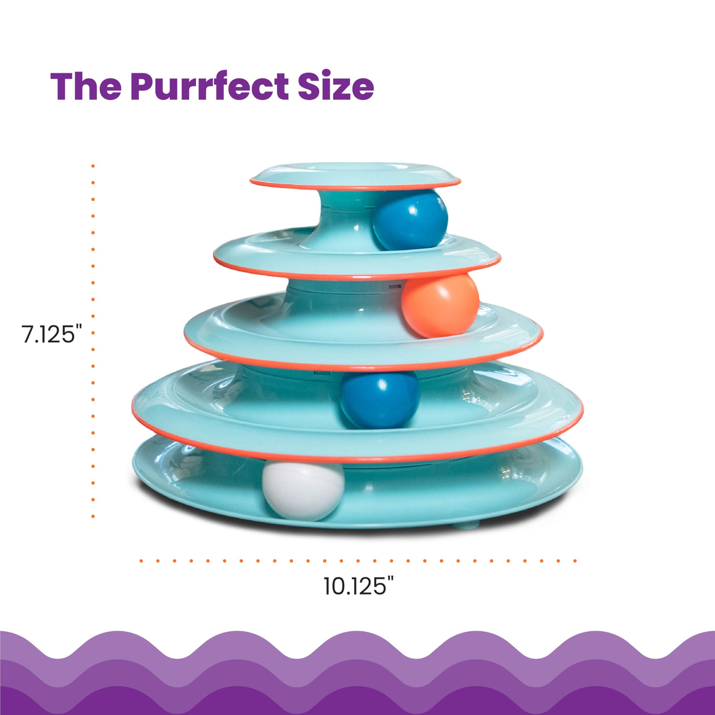 The Catstages Chase Meowtain Interactive 4-Tier Cat Track Toy has four levels of ball rolling fun! Each track features a colored ball that spins and rolls as your kitty paws and swipes at it. Your search for the best cat toys for bored indoor adult cats and kitten is paw-sitively over. This puzzle toy offers hours of cat enrichment and fun-loving play. The non-slip base and sturdy construction make it a great option for families with one or multiple cats. A closed top design keeps your curious kitty from getting stuck while exploring. Wipe clean with a damp cloth SAFETY & CARE: When choosing a toy, make sure to choose the appropriate size for your cat. This toy is recommended for cats 12 weeks and older. No toy is indestructible. ALWAYS supervise your cat when using a toy of any kind. Inspect toys regularly for damage and remove if broken, or if parts become separated, as serious injury may result. For cats only. Keep out of reach of children. May contain small parts.