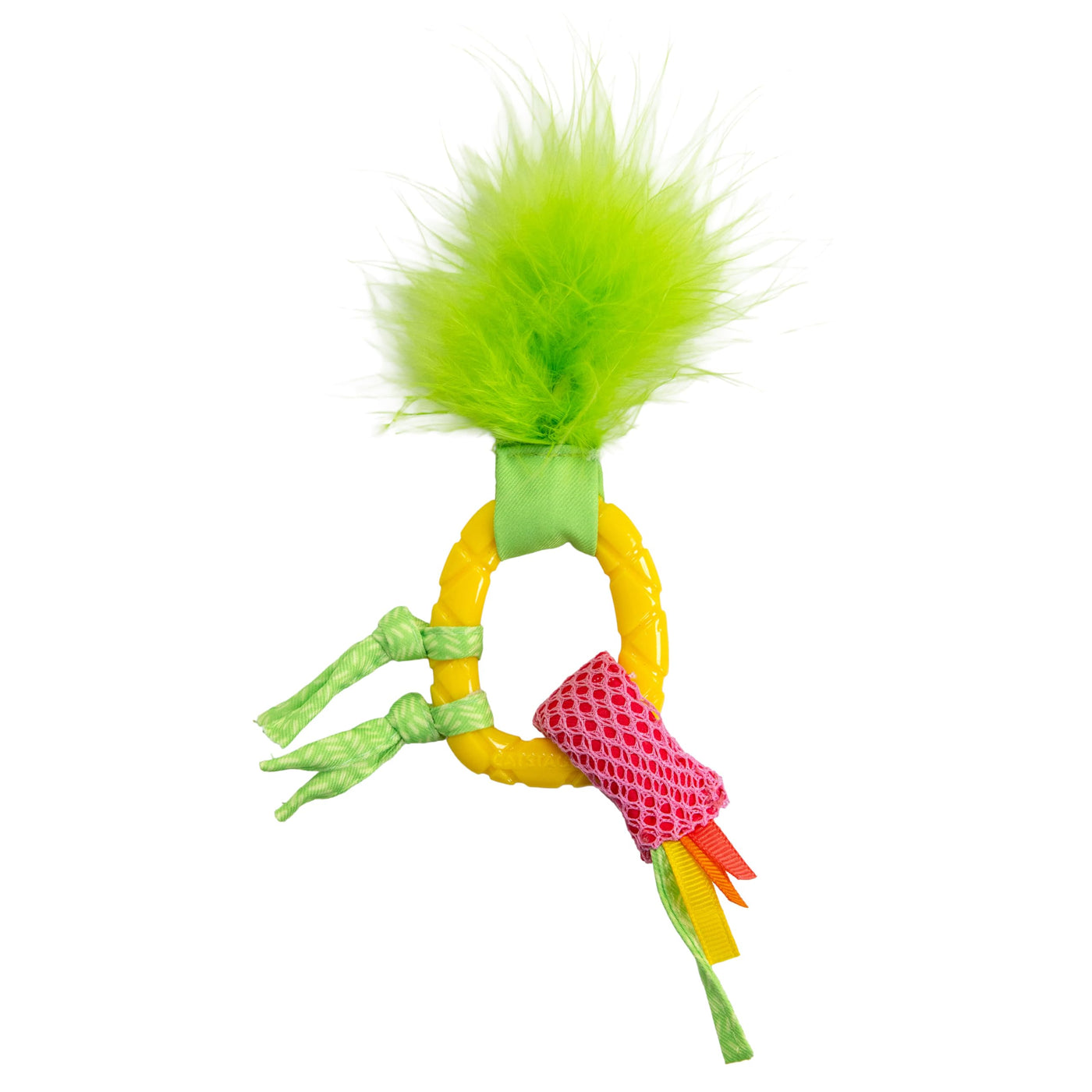 The Catstages Dental Pineapple Teether provides soothing relief for teething cats and kittens while supporting clean teeth through play. This soft and chewable toy features textured mesh and fabric that gently clean teeth and massage gums. Its light catnip oil coating naturally encourages cats to chew and play, extending engagement without overstimulation. Designed in a fun pineapple shape, the toy also includes feathers and ribbons to appeal to your cats hunting instincts. Lightweight and paw-sized, its easy for cats to bat, bite, and carry around-perfect for both kittens exploring their environment and adult cats in need of enrichment. SPOT CLEAN ONLY SAFETY & CARE: When choosing a toy, make sure to choose the appropriate size for your cat. No toy is indestructible. Ultimately, your pets safety is your responsibility. ALWAYS supervise your cat when using a toy of any kind. Inspect toys regularly for damage and remove if broken, or if parts become separated, as serious injury may result. For cats only. Keep out of reach of children. May contain small parts. This item is not recommended for cats that chew heavily.