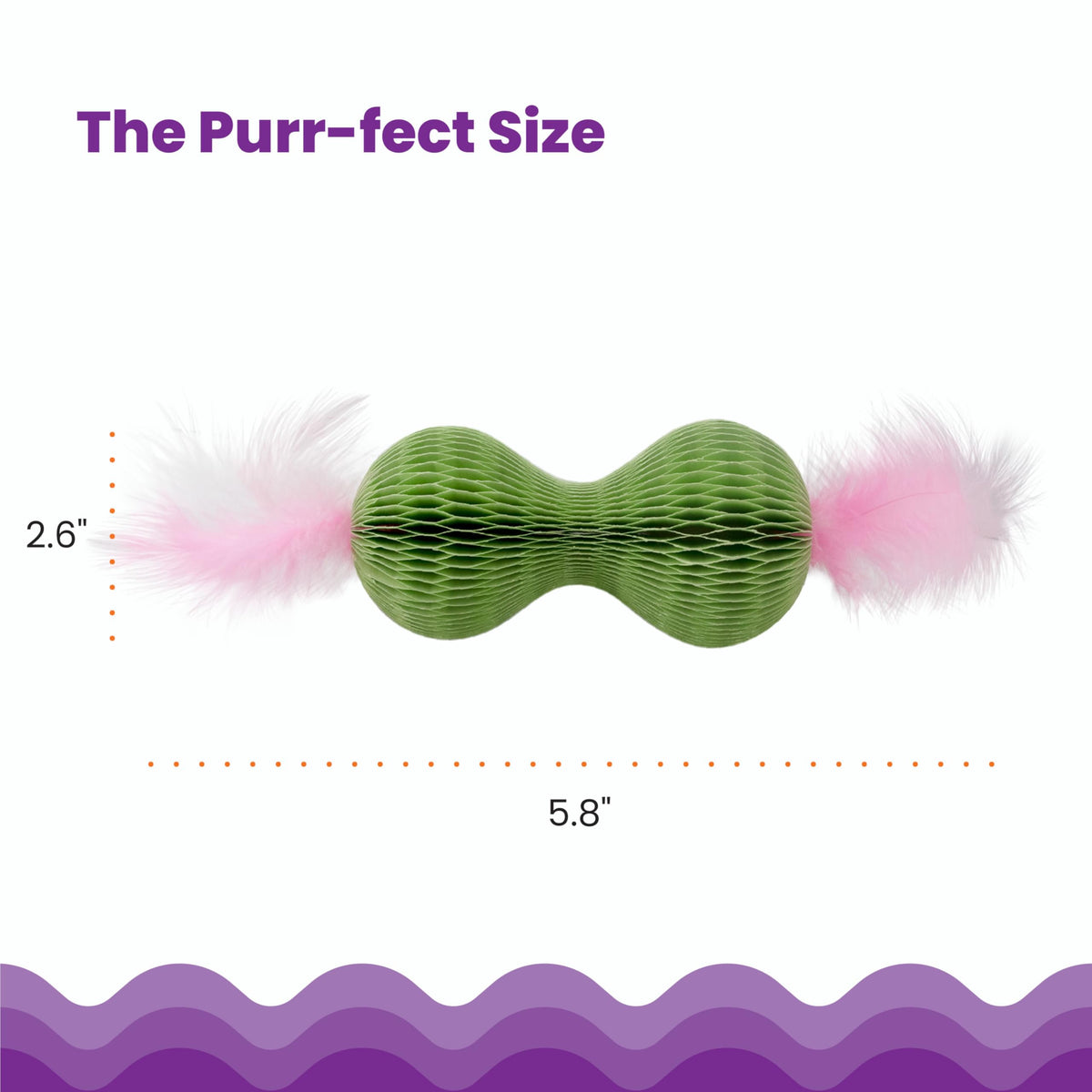 The Honeycomb Hide-A-Ball Will Satisfy Your Kittys Hunting And Scratching Urges At The Same Time! This 2-In-1 Cat Toy Comes With Two Plush Catnip Balls With Feather Ends That Entice Your Kitty Into Energetic Play. The Outer Green Shell Is Made From Corrugated Material Which Is Great For Scratching And Batting. The Catnip Balls Can Be Easily Removed Prior To Play Or Placed In Through Either End Of The Corrugated Shell For An Exciting And Stimulating Experience Your Kitty Will Enjoy. Warning: For Cats Only. Contains Small Parts. Keep Out Of Reach Of Children. When Choosing A Toy, Make Sure To Choose The Appropriate Size For Your Cat. No Toy Is Indestructible. Always Supervise Your Cat When Using A Toy Of Any Kind. Inspect Toys Regularly For Damage And Remove If Broken, Or If Parts Become Separated, As Serious Injury May Result.