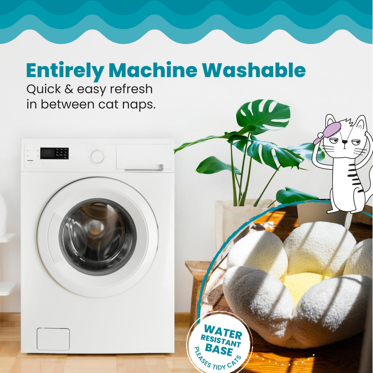 Catstages Purrfect Petals Washable Flower Shaped Round Cat Bed For Indoor Cats, Plush, White