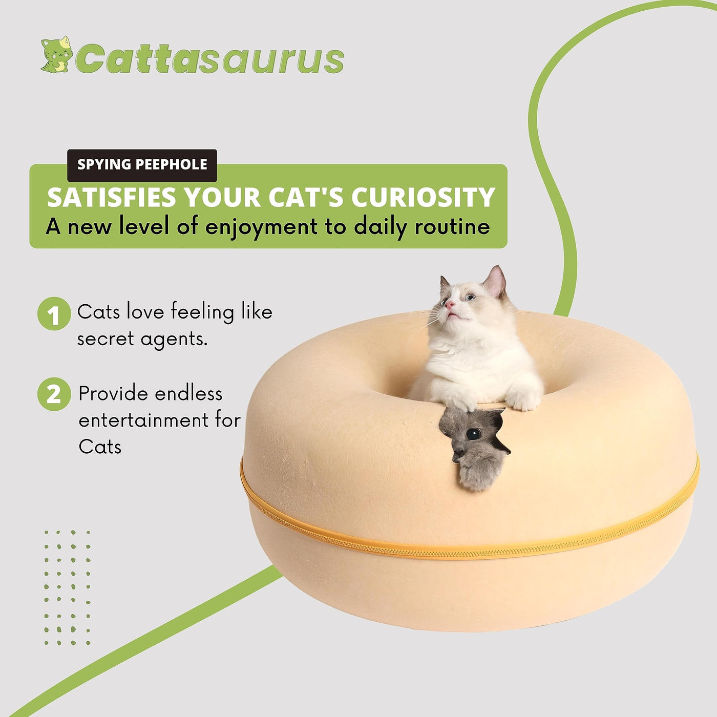 Cattasaurus Peekaboo Cat Cave For Multiple & Large Cats Up To 30-45 Lbs, Scratch Detachable & Washable Tunnel Bed, Comfy Donut Cat Cave (Pastel Macaron, Large)