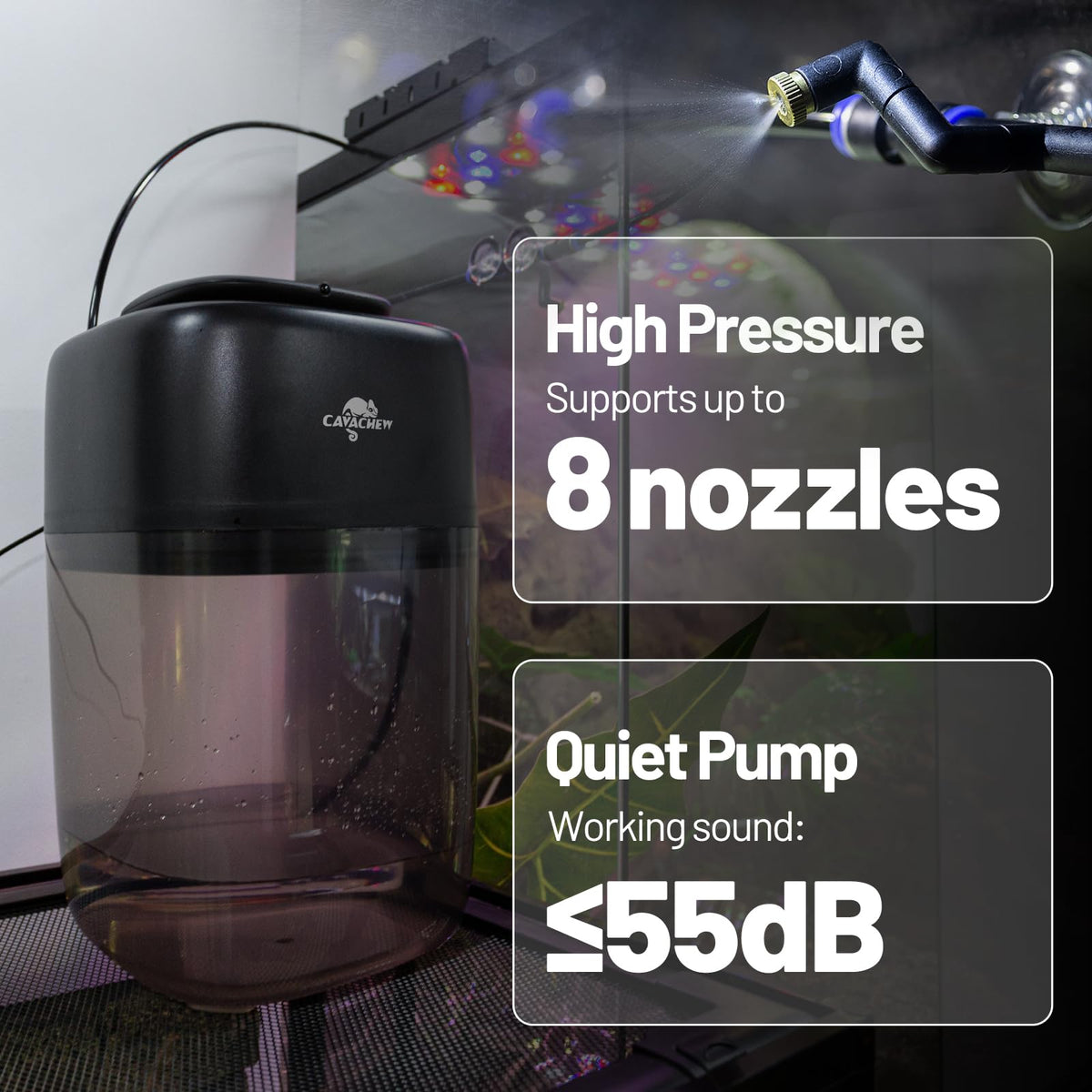Cavachew 10L Reptile Mister With 4Pcs Nozzles, High Pressure Reptile Mister System With Timer, Automatic Mister Fogger For Reptile Tank, Adjustable Terrarium Misting Humidifier For Reptiles/Amphibians