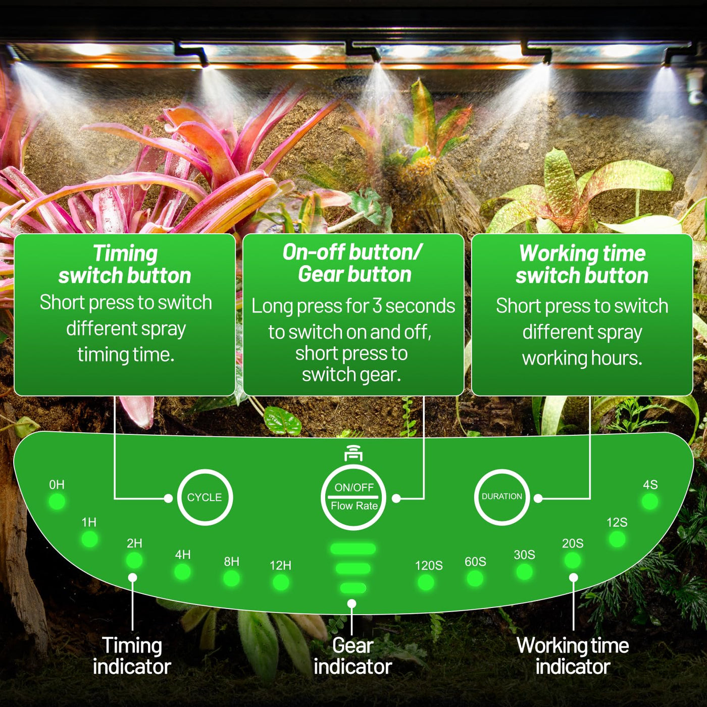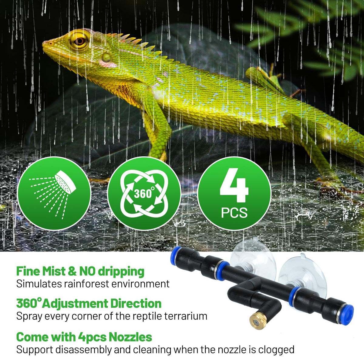 Cavachew 10L Reptile Mister With 4Pcs Nozzles, High Pressure Reptile Mister System With Timer, Automatic Mister Fogger For Repti