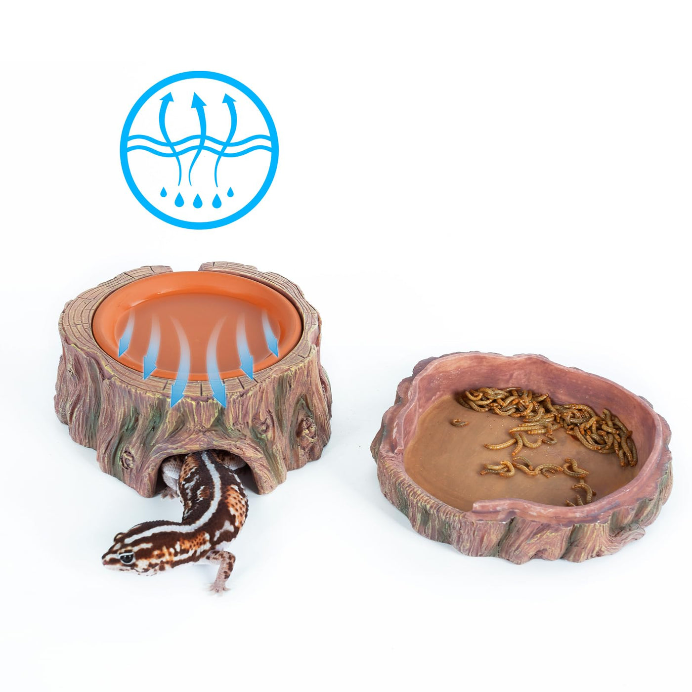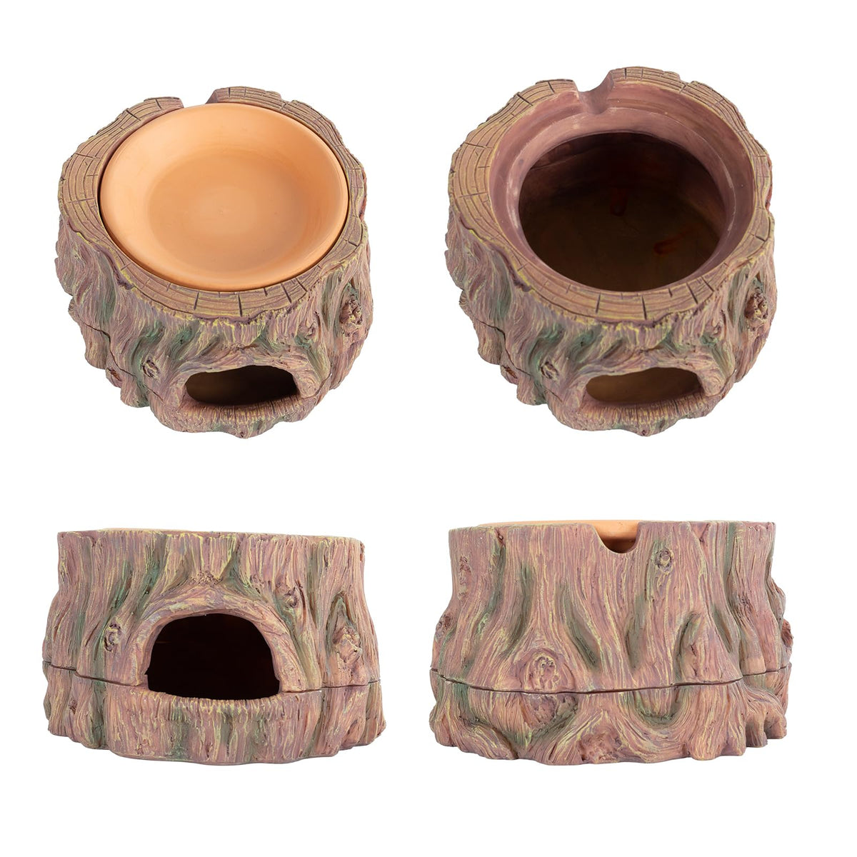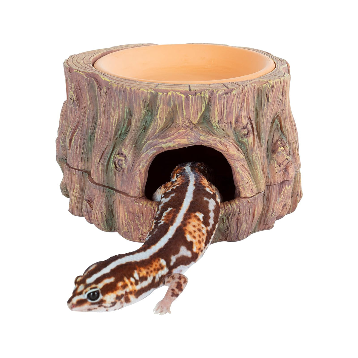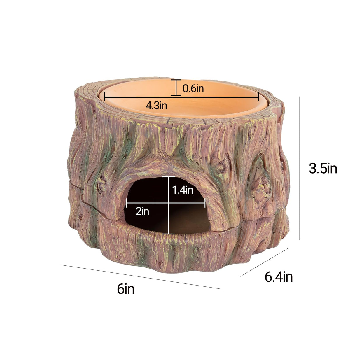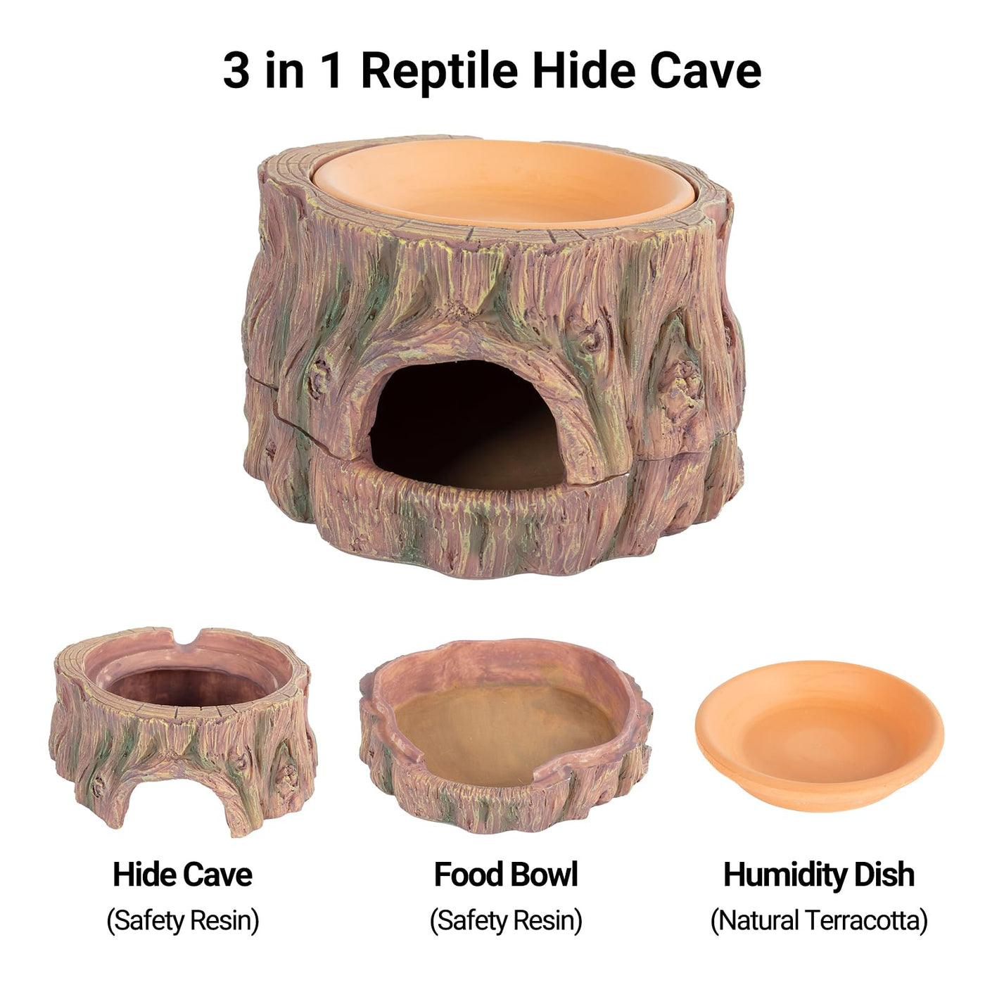 CAVACHEW 3 in 1 Reptile Hide Cave with Detachable Base & Humidity Dish, Essential Tank Terrarium Decor Humid Hideout Accessories