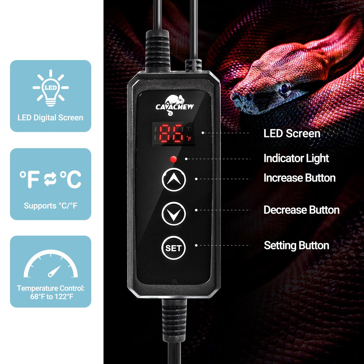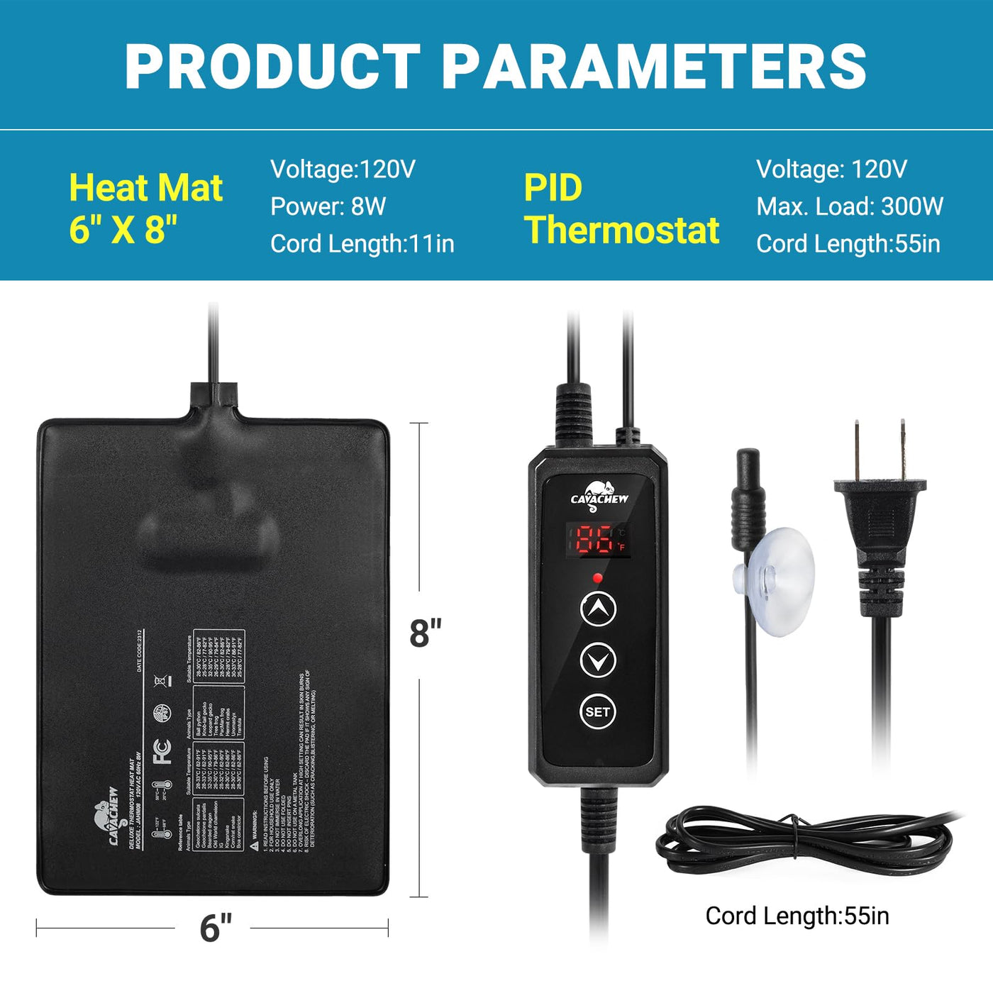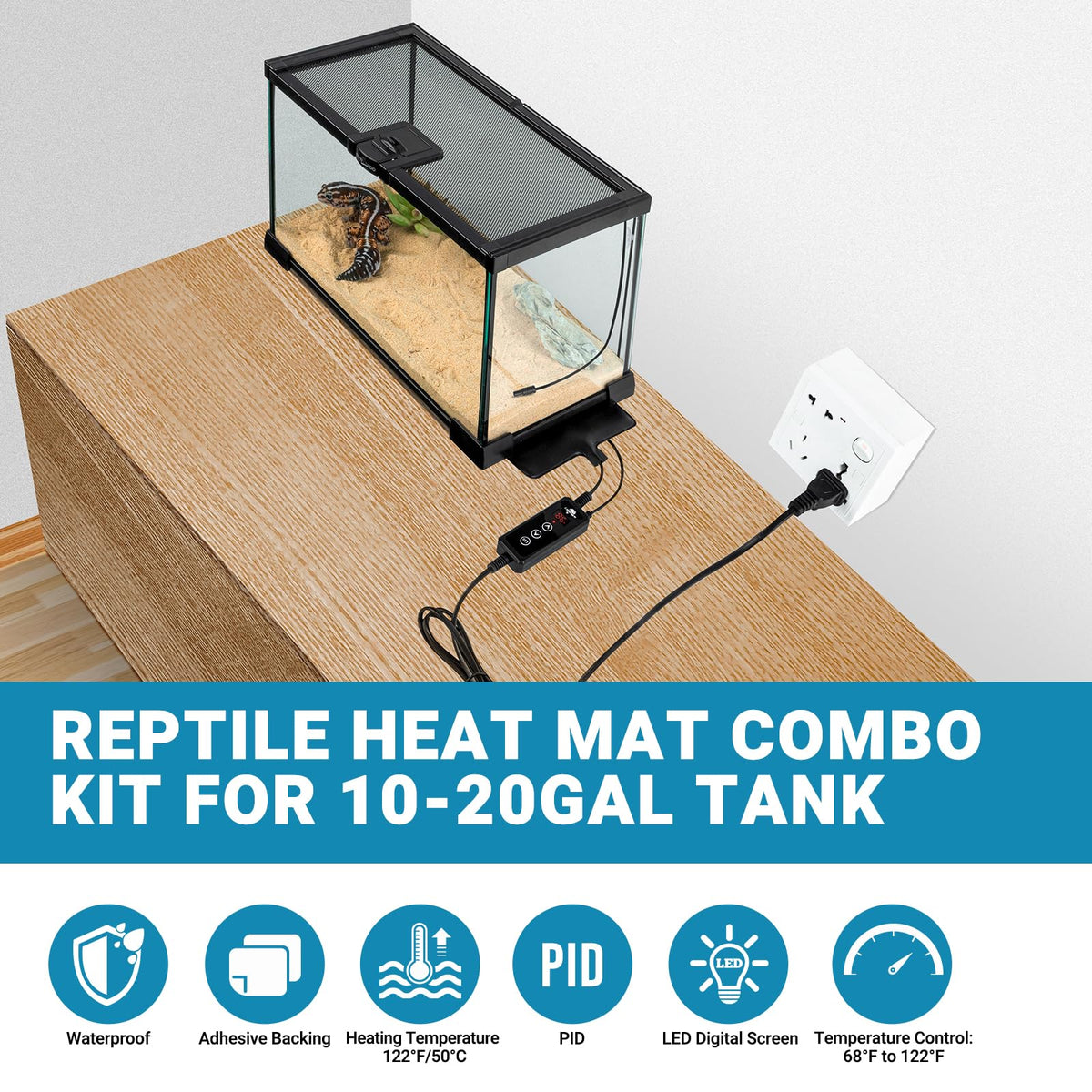 Cavachew Reptile Heat Pad With Dimming Thermostat, 6'' X 8'' 8W Heating Pad Combo Set For 10-20 Gallon Reptile Tank, Under Tank