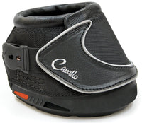 Sleek, lightweight and stylish, with all the performance you would expect from Cavallo. Sport boots are ideal for lighter riding and the Regular sole is shaped to fit a rounder hoof shape. Leather inside and out conforms comfortably to your horse’s bulbs. Sport boots are great for comfort for chronic pain and hoof sensitivity, rehabilitation from injuries, abscesses, navicular disease, laminitis/founder, punctures, sole bruising and contracted heels. Not just for riding, Sport boots can be used for protection during trailering and breeding or taken on the trail as a “spare tire” for lost shoes. The regular sole is suitable for a hoof that is width and length equal.