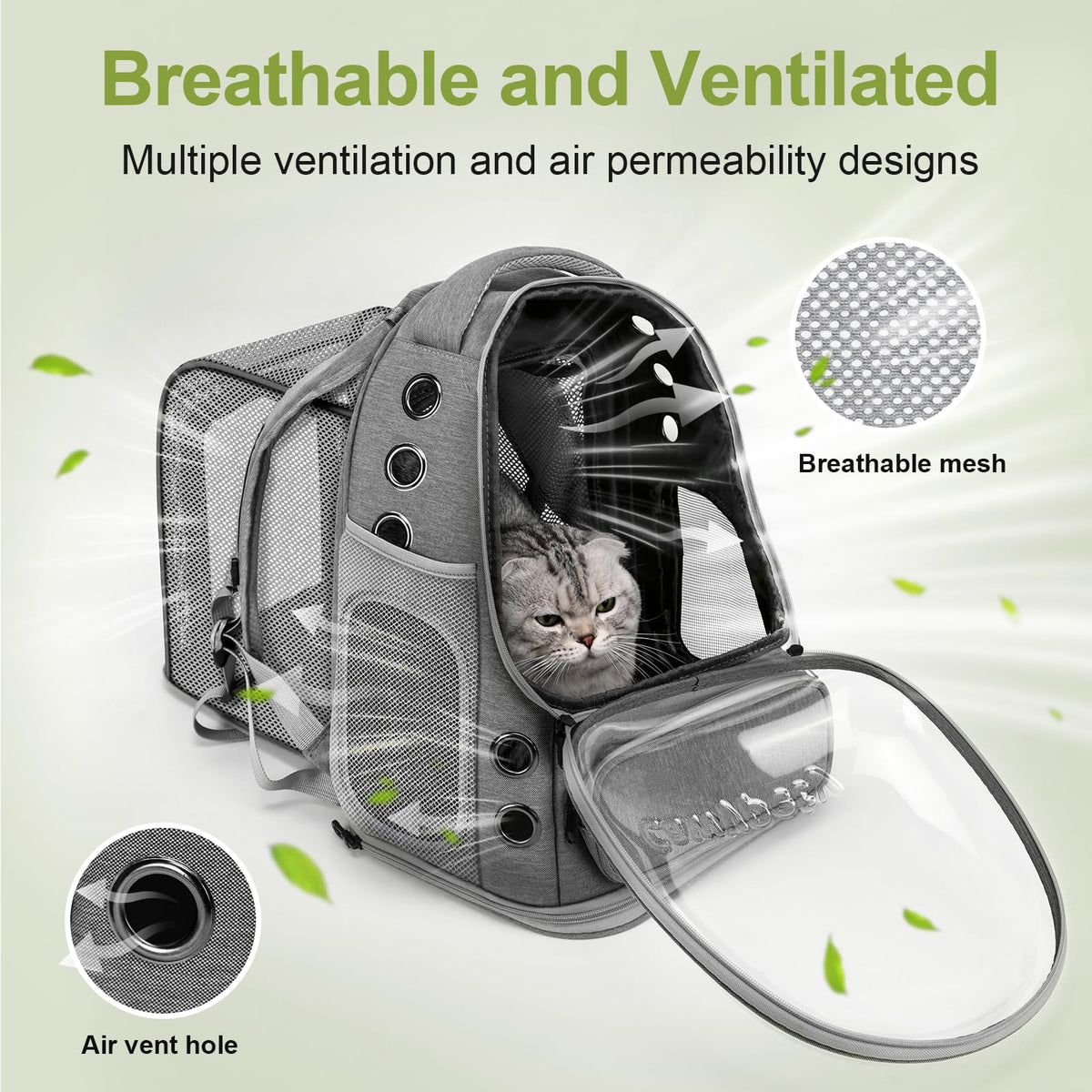 The Expandable Cat Carrier Backpack With Breathable Mesh Is The Ultimate Accessory For Pet Owners On The Go. Designed To Cater To Both Functionality And Style, This Versatile Cat Carrier Backpack Allows You To Take Your Feline Friend Anywhere With Ease. With Its Expandable Feature, This Cat Carrier Can Be Adjusted To Accommodate Cats Of Various Sizes Comfortably. Whether You Have A Small Kitten Or A Larger Adult Cat, This Carrier Ensures A Snug And Secure Fit For Your Furry Companion. No Need To Worry About Your Cat Feeling Cramped - They Will Have Plenty Of Space To Move Around And Stretch Their Legs. Featuring A Breathable Mesh Design, This Backpack Provides Excellent Airflow While Keeping Your Cat Safe And Secure. The Breathable Mesh Windows Not Only Allow Fresh Air To Circulate But Also Provide Your Beloved Pet With A View Of The Outside World, Reducing Anxiety During Travel. This Cat Carrier Backpack Also Features Multiple Entrances, Ensuring Easy Access For You And Your Cat. The Sturdy Construction Of This Pet Carrier Backpack Ensures Durability And Longevity. Crafted From High-Quality Materials, It Can Withstand Everyday Wear And Tear, Making It Perfect For Adventurous Trips Or Simply Running Errands. The Adjustable Padded Shoulder Straps Provide Enhanced Comfort, Allowing You To Carry Your Cat Effortlessly For Hours At A Time. Perfect For Hiking, Traveling, Or Even Just Strolling Around Town, This Expandable Cat Carrier Backpack Is The Ideal Choice For Pet Owners Seeking Convenience And Style. Its Sleek Design And Trendy Colors Make It A Fashionable Accessory That You And Your Cat Will Love. Say Goodbye To Traditional Carriers And Step Up Your Pet Transportation Game With This Innovative Cat Backpack Carrier. Whether You Call It An Expandable Cat Carrier, Cat Backpack, Or A Cat Bubble Backpack, This Product Is Designed To Meet All Your Pet-Carrying Needs. So Why Wait? Get Your Expandable Cat Carrier Backpack With Breathable Mesh Today And Start Exploring The World With Your Furry Friend.