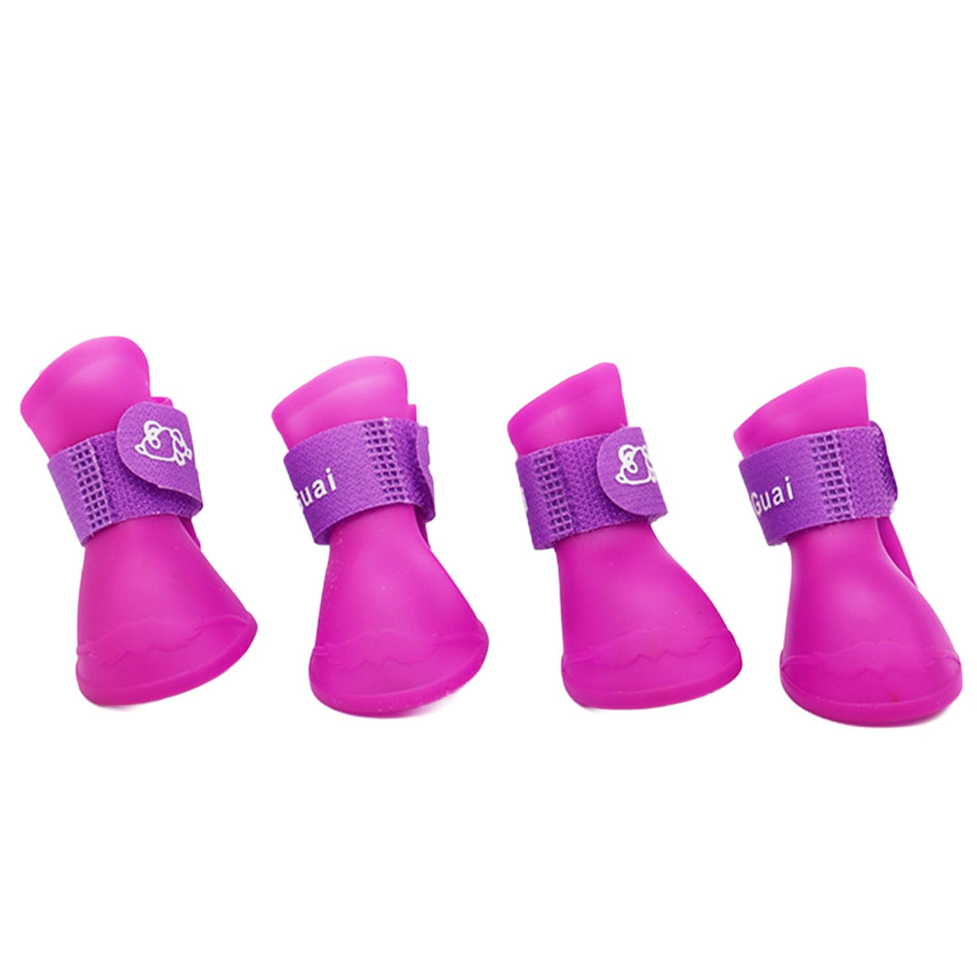 Cdycam Cute Little Pet Dog Puppy Rain Snow Boots Shoes Booties Candy Colors Rubber Waterproof Anti-Slip (Purple, X-Large)