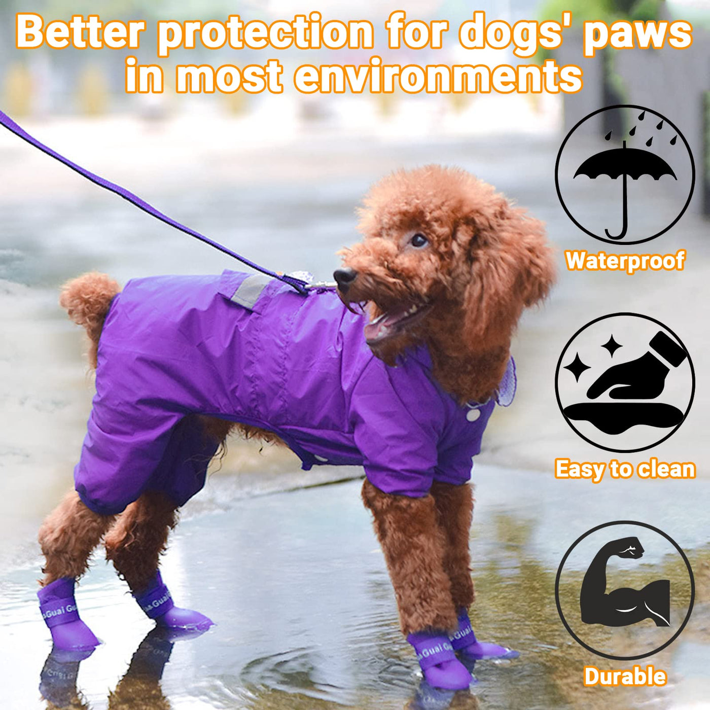 Q: Are these dog boots waterproof and suitable for all weather conditions?A: Yes, the Cdycam dog boots are made from rubber material that is completely waterproof, making them ideal for rainy, snowy, or muddy conditions. They protect your pet's paws from moisture and dirt while allowing them to walk freely.