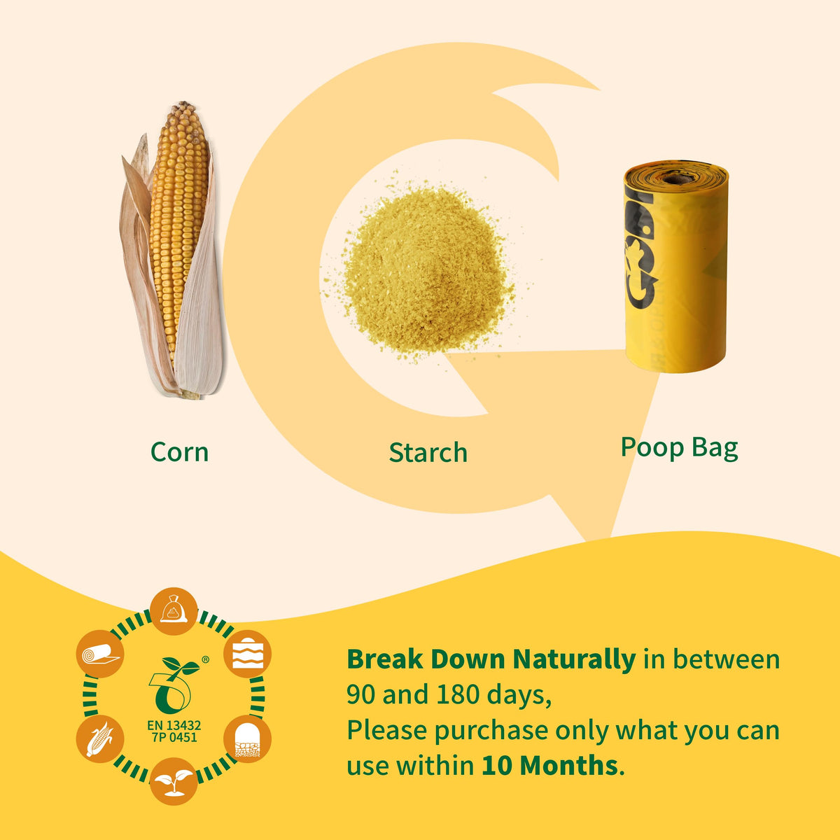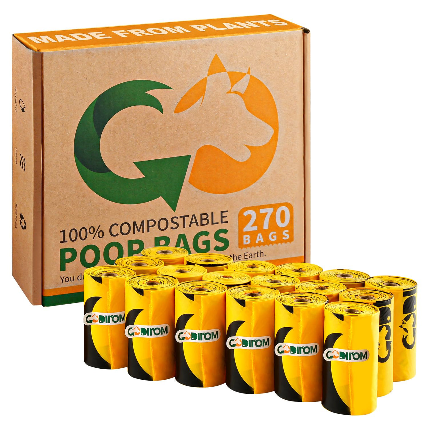 Certified 100% Compostable Poop Bags For Dogs, 270 Count Guaranteed Leak Proof And 18 Microns Extra Thick Dog Waste Bag, 18 Roll