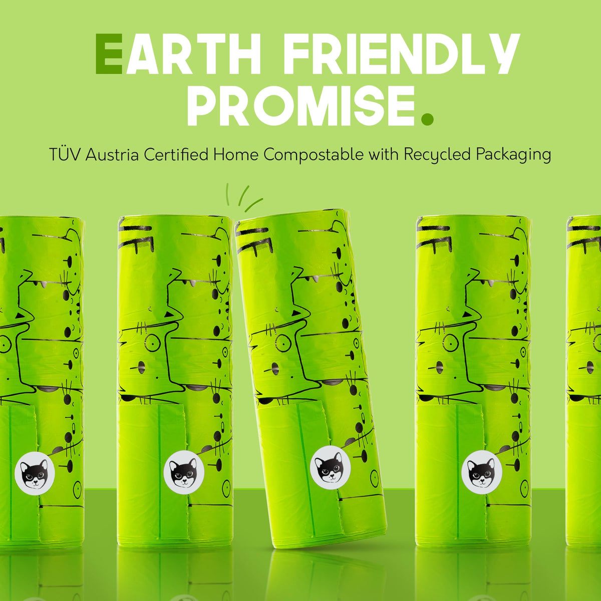 Certified Home Compostable Cat Litter Bags For Poop - 10% To Charity - Cornstarch-Based - For Cleaning Up Litter Trays - Nf T51-