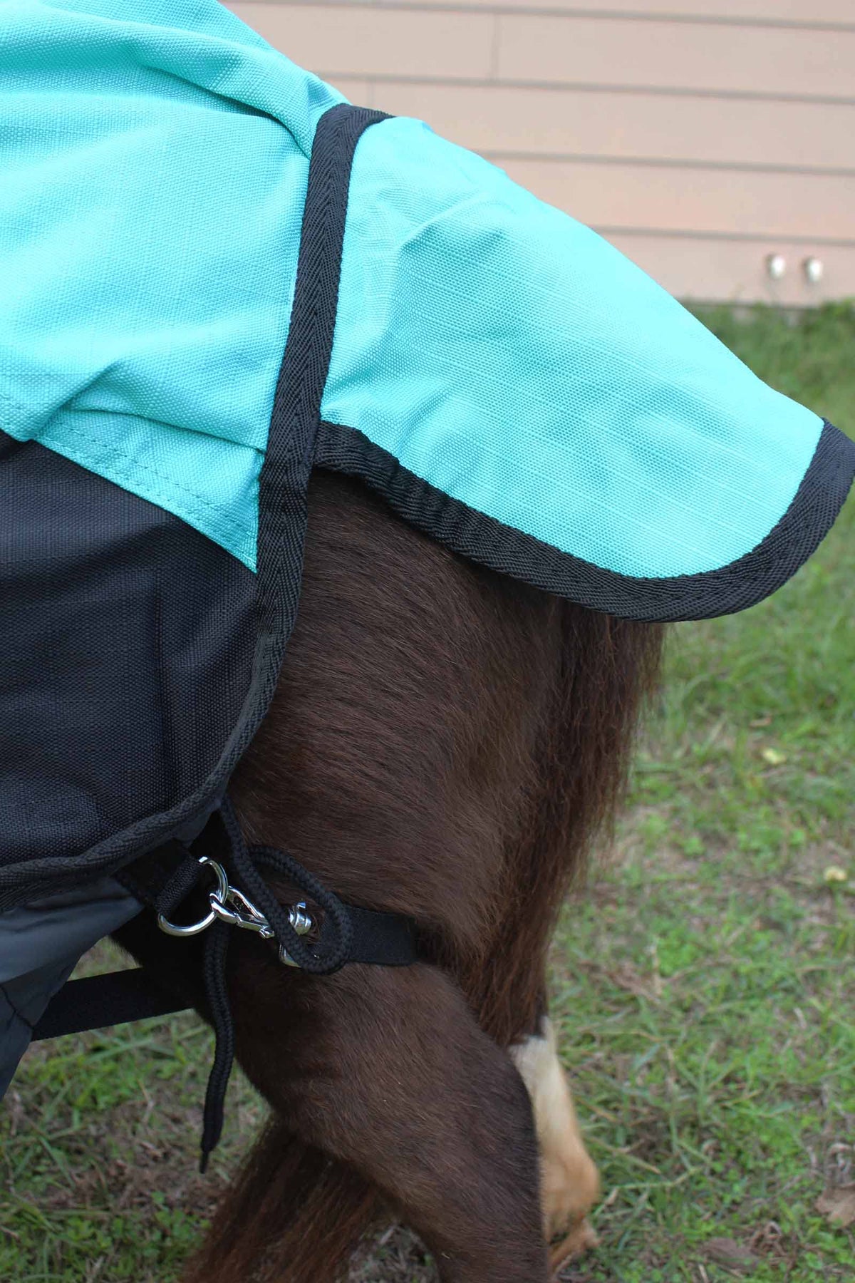 The reinforced double-sewn stress points offer additional reinforcement to help prevent tears while the fleece wither helps provide protection from rubbing. Shoulder gussets allow for freedom of movement and help to prevent shoulder rubbing. The adjustable elastic leg straps help to secure the blanket and prevent from shifting from side to side and the tail cover provides additional protection from moisture. All hardware is made of rust-free stainless steel.