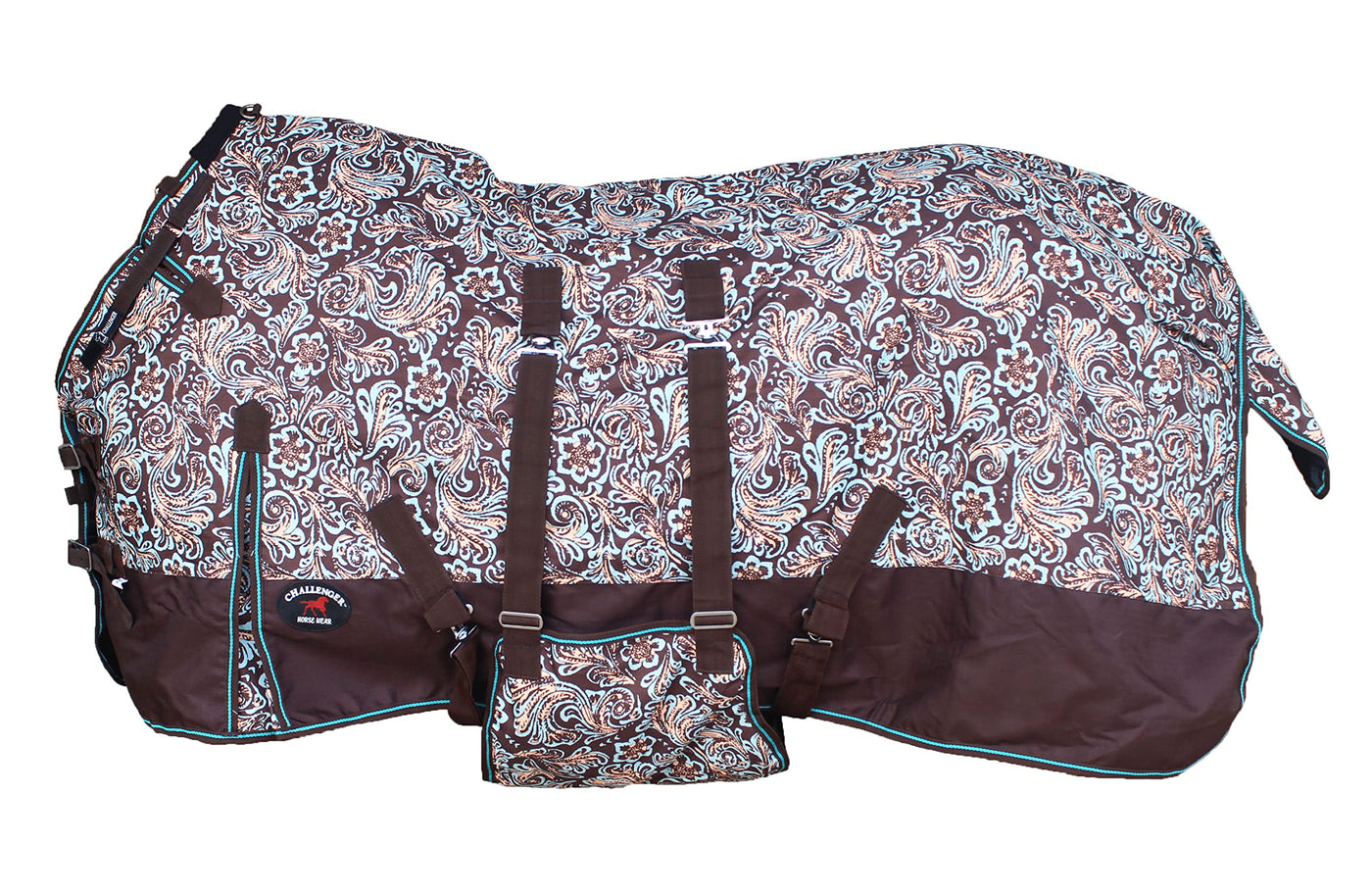 Q: Is the Challenger winter blanket waterproof?A: Yes, the Challenger winter blanket is made from 1200 Denier fabric that is both waterproof and breathable, ensuring your horse stays dry and comfortable in various weather conditions.
