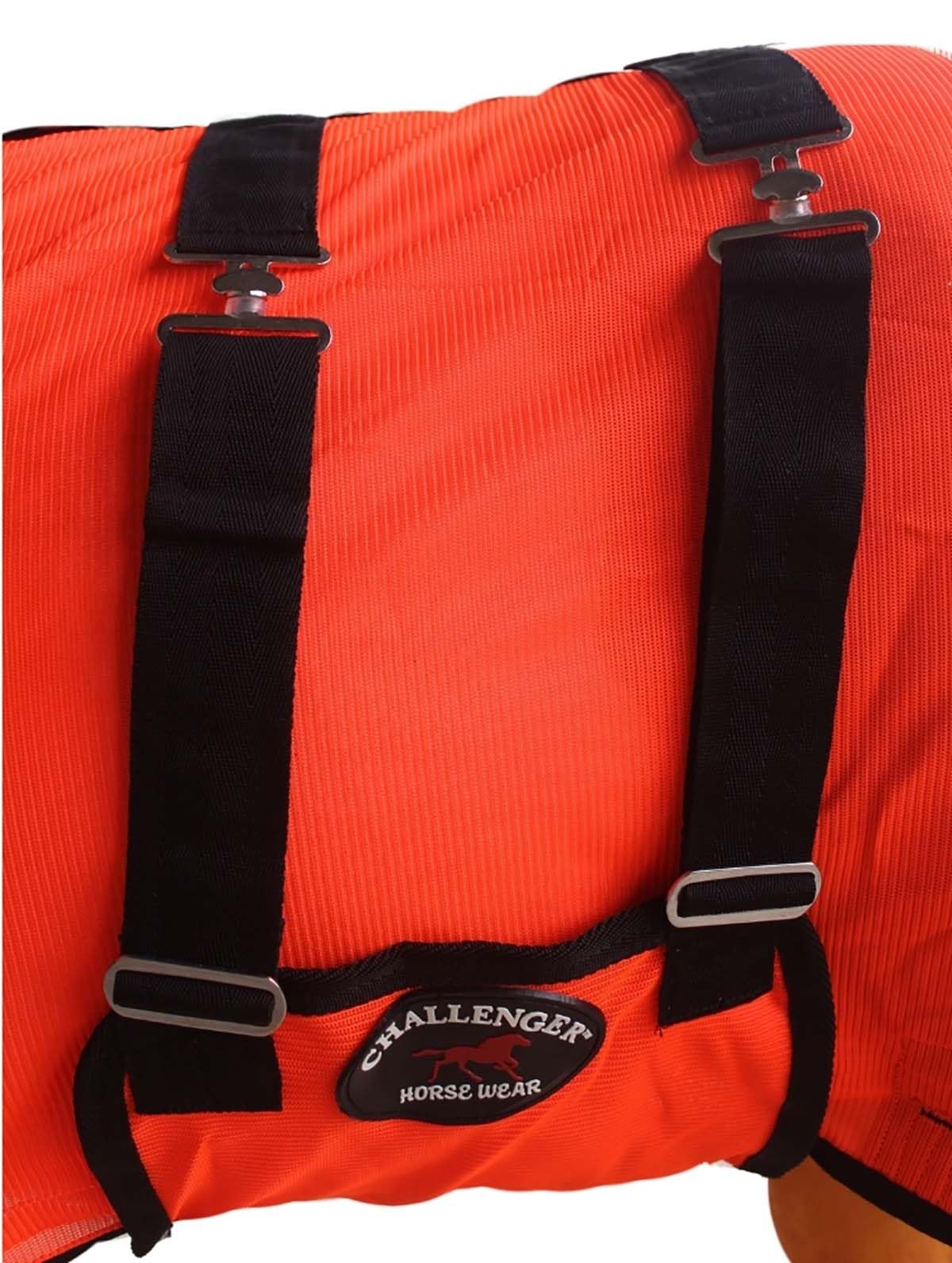 ? HORSE FOAL FLYSHEET: Protecting your horse with this eye-catching flysheet / Scrim sheet from Challenger. Designed in Gorgeous colors, its made from durable poly/nylon mesh that promotes airflow to keep your horse cool and comfortable. The breathable material also acts as a barrier, making it both functional and stylish. Designed to deliver excellent protection for miniature horses, foals, ponies, and donkeys, this blanket features a tough polyester outer shell and a smooth polyester lining at the shoulders to reduce chafing. Built for durability and comfort, it offers reliable coverage to keep your mini well-protected in any season.