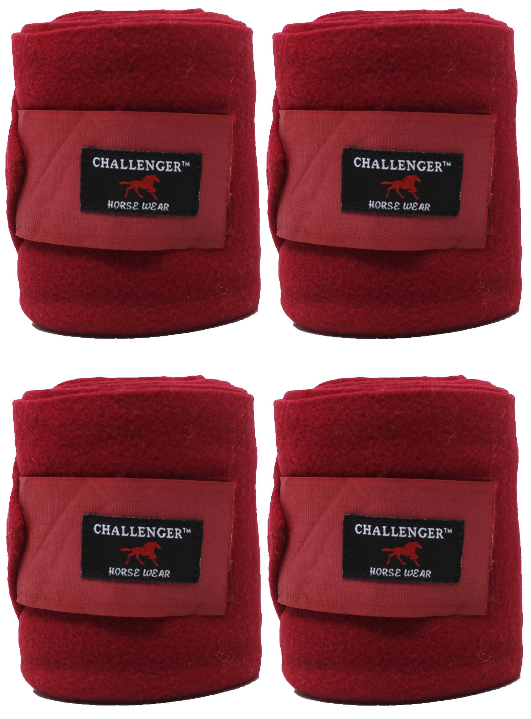 Challenger Horse Tack Grooming Leg Polo Wrap Set Of 4 Soft Fleece Burgundy 95R06
