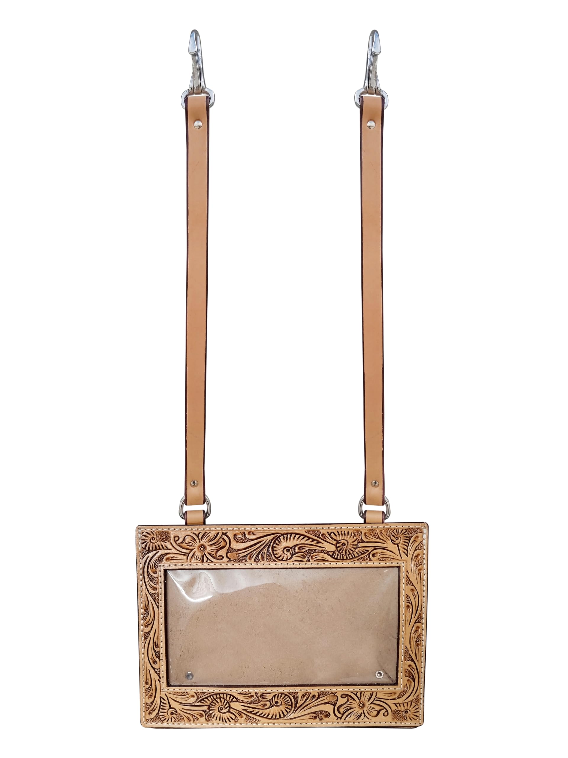 CHALLENGER Set of 2 Handmade Floral Tooled Tan Leather Livestock Horse Show Exhibitor Number Holder 33RS01