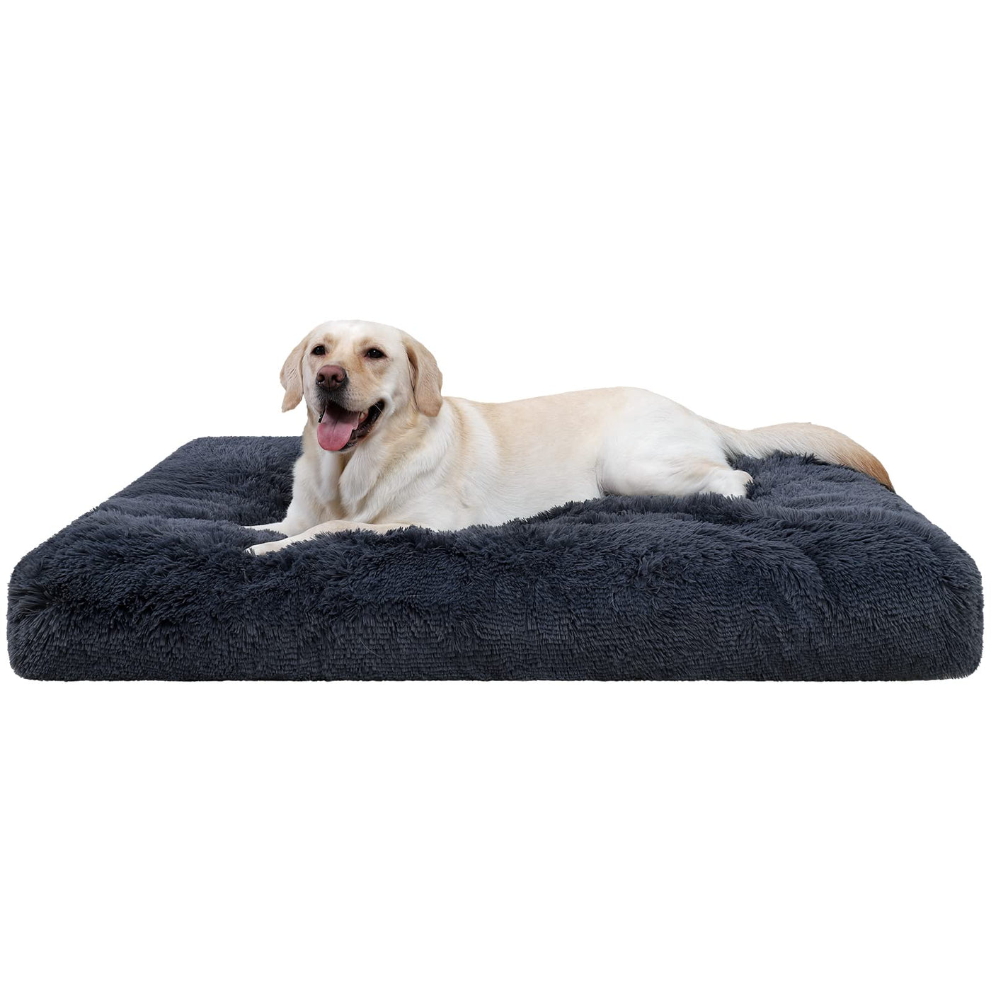 REMIUM MATERIAL- Our dog crates for large dogs is constructed with thousands of individual fluffy plush microfibers soothing your dogAs tired paws and shielding body from the cold floor Thick and high dense padding make the dog beds for large dogs durable for long trem use REMOVABLE cOVER & EASY TO cLEAN - Our large dog beds cover with zipper is removable and easy to cleanOur dog mats for sleeping is machine washable Just put the removable cover in the washing machine to help you solve the cleaning problem or simply vaccum the suface SIZE DIREcTIONS Pet Bed measures approximately 41L x 27W x 4H - Inches thickness upgrade fits 42L Large dog crate bed crate pad & works great as a stand-alone pet bed on floor or sofa Best XL dog bed for large dogs & cats up to 100 pounds grey rectangle big dog bed for large dogs can bed used indoors outdoors or in a car Waterproof Surface & Anti-Slip BottomHigh quality water resistance Surface with ultra absorbent microfiber will prevent potential water dripping prombleBacking with sticky beads to keep the dog beds for large dogs firmly in place and prevent shifting and skidding achine Washable & No SheddingWith advanced fiber locking technology reinforced stiches durable backing and special staining technique this large dog bed can withstand multiple machine washing and still maintain its shape and color color will stay vibrant for many years no matter how many times you wash and dryNo worry about shedding fading