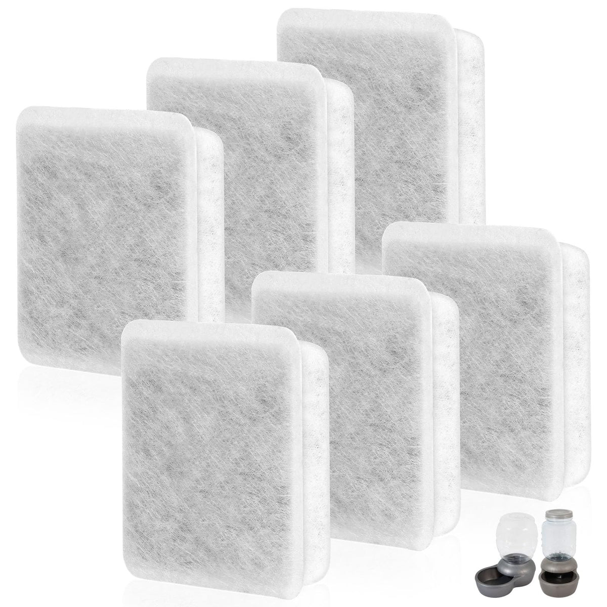 Compatibility: Compatible with 2 type of pet water bowls. | Premium Filtration System: External polyester material and inner charcoal granules filter hair, heavy metals effectively . Keeping your pet's water clean and fresh. | Improves Water Quality: Provides better tease to Helps pet to increase water consumption. | Size: Filter size is 2 in long and 2 in wide. Thickness is about 0.5 in. | Note: Please rinse filter before use. Replace filter every 4-8 weeks.
