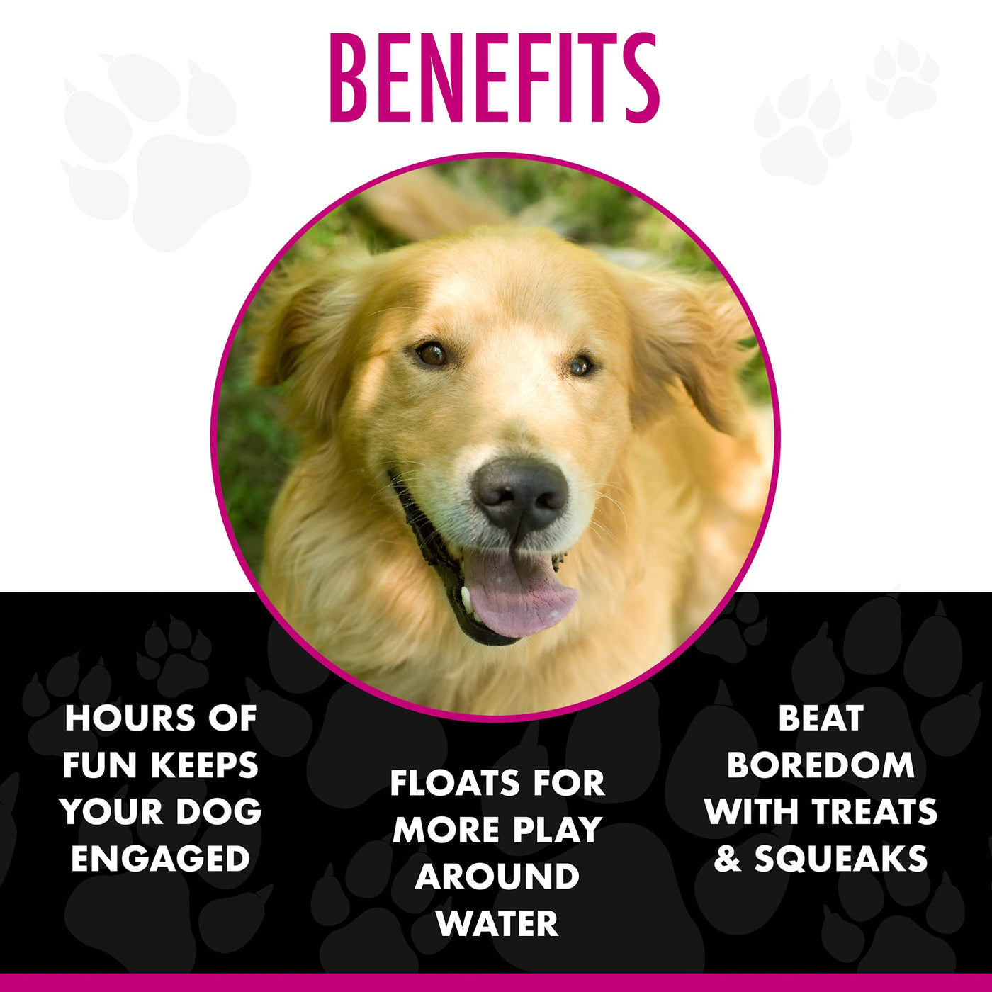 The Chase 'n Chomp Field Disk is a soft rubber frisbee toy with a squeaker inside. The Field Disk can be stuffed with treats and will randomly dispense them as it is rolled and played with. It also floats for extra fun! Measuring approximately 4.75 inches, the Field Disk is perfect for medium and large size dogs.
