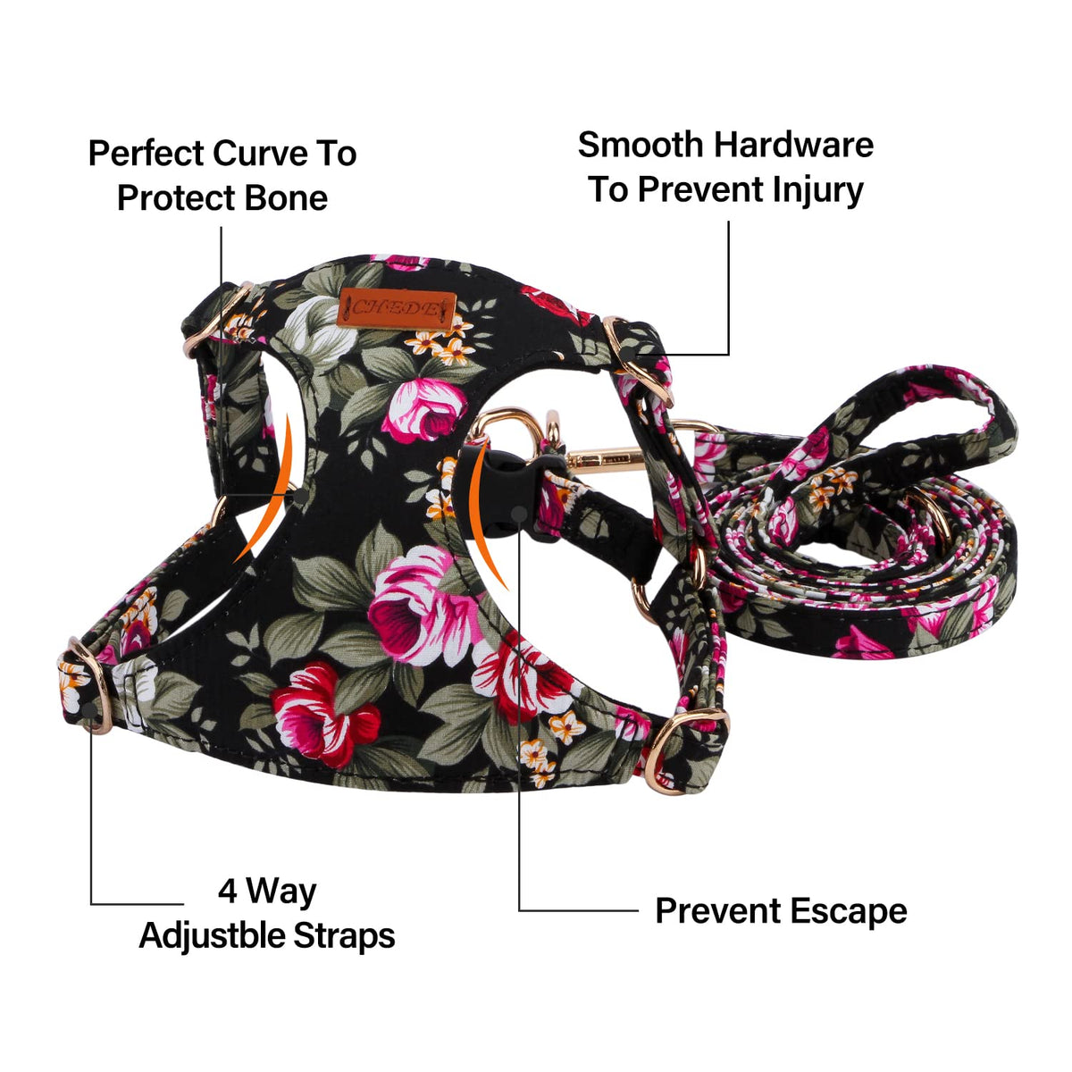 CHEDE Floral Pattern Dog Harness - Lightweight, Soft, Adjustable, Small & Medium Dog Harness and Leash Set, Suitable for Puppy (