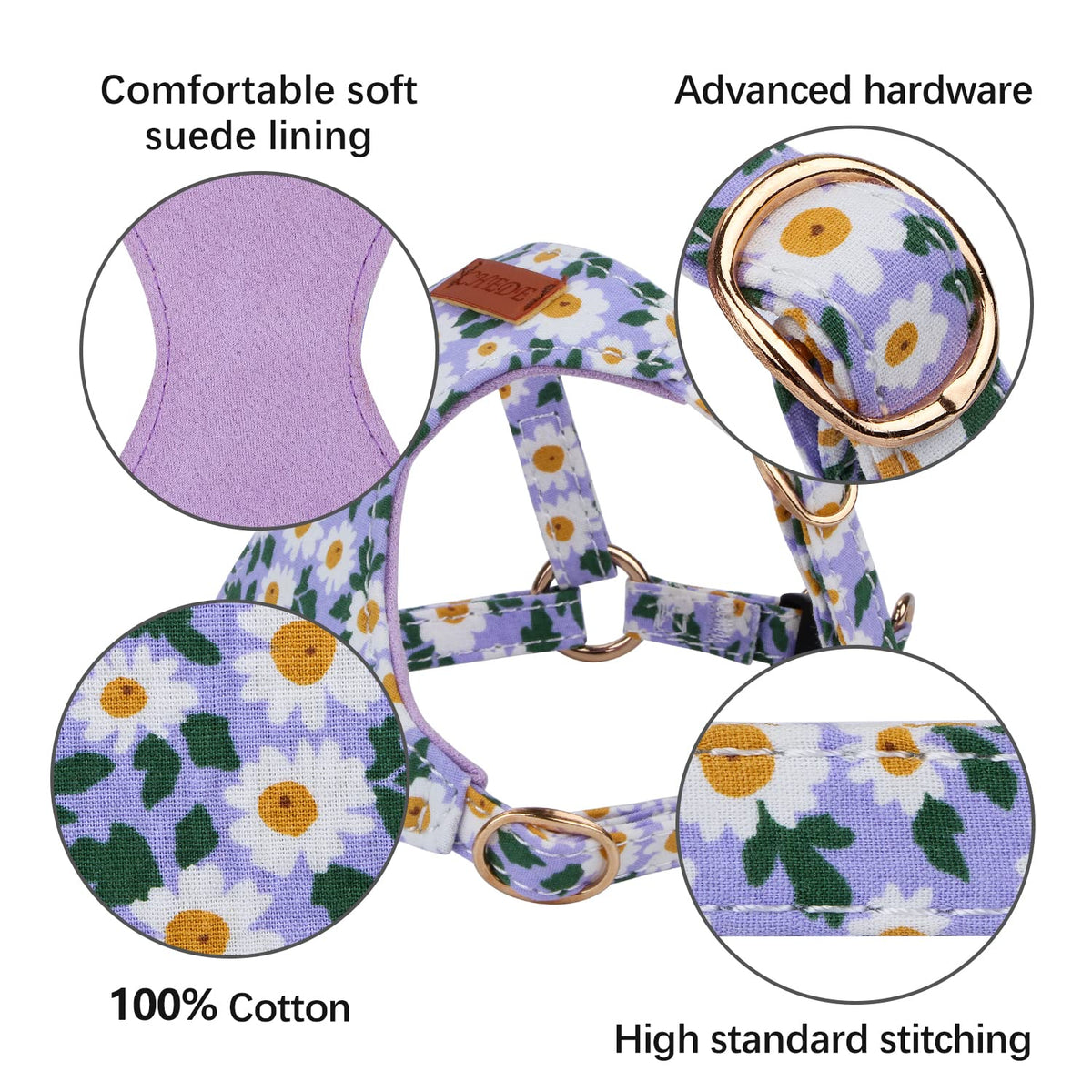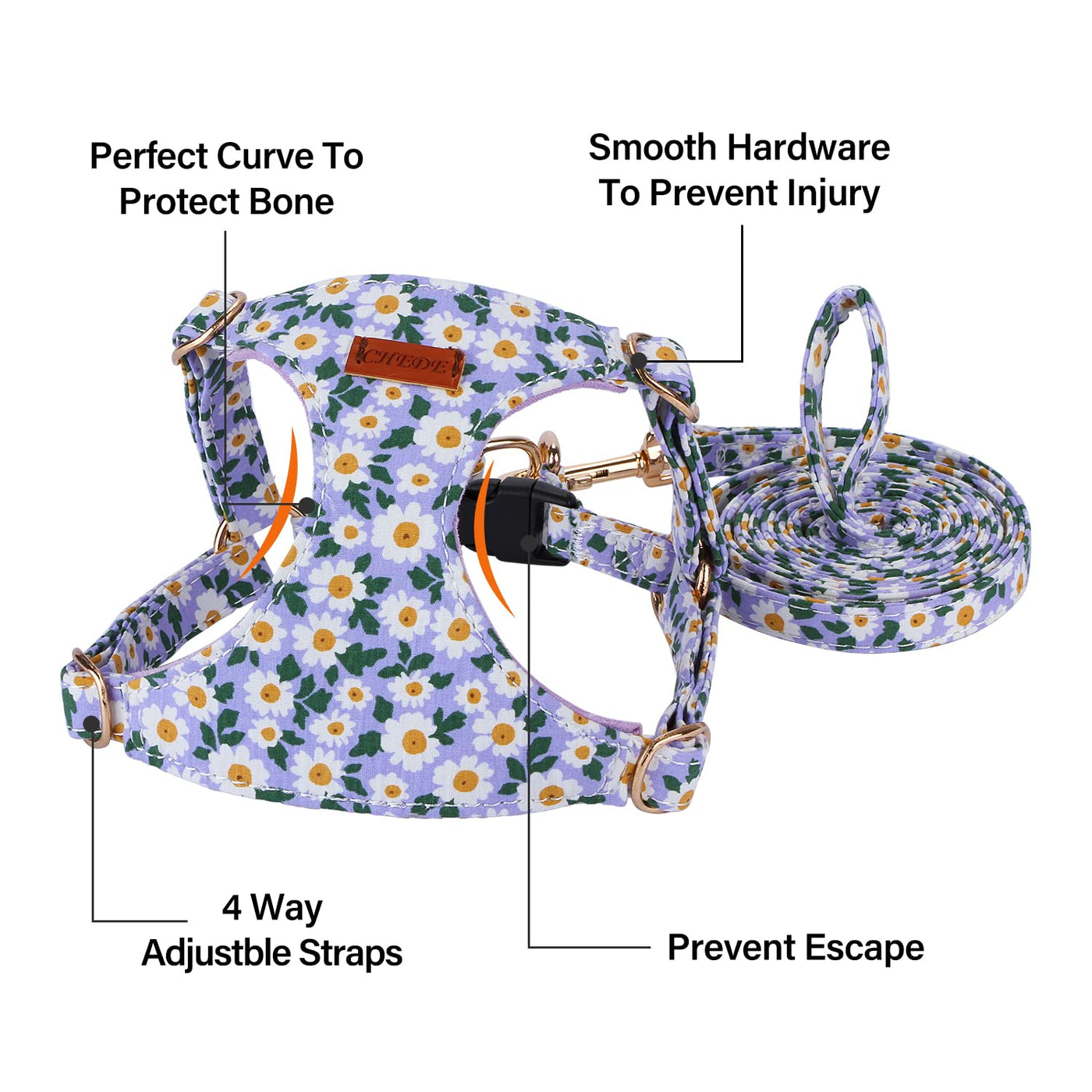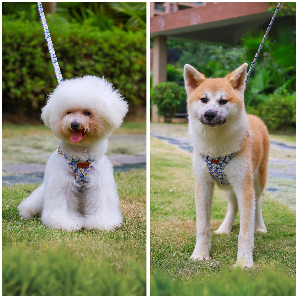 CHEDE No Pull Floral Pattern Dog Harness - Lightweight and Soft, Adjustable Small Dog Harness and Leash Set, with Dog Leash, Sui