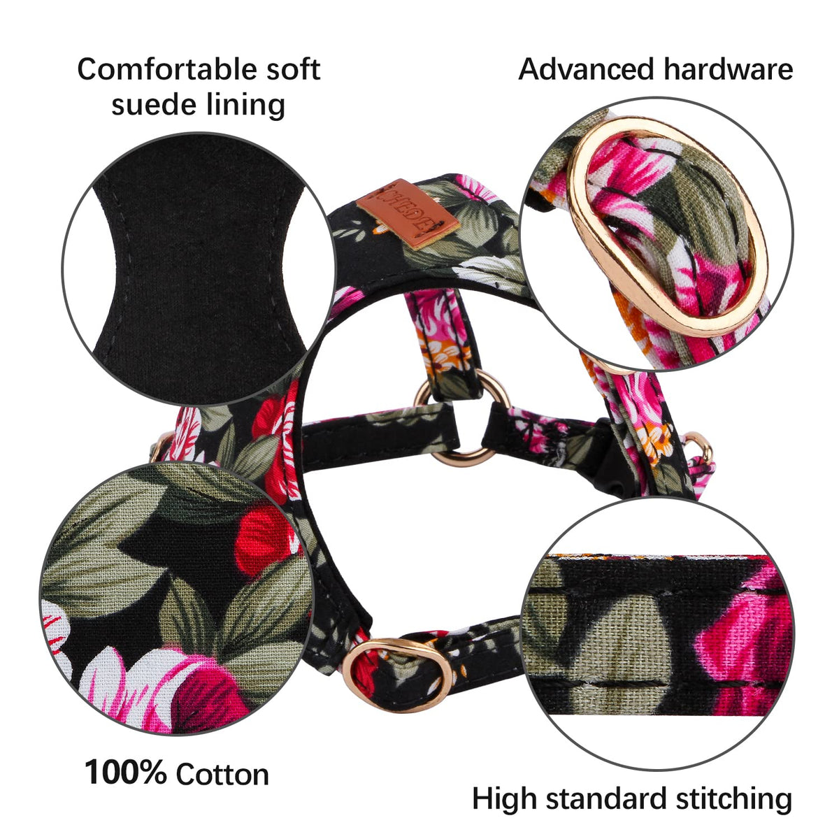 CHEDE No Pull Floral Pattern Dog Harness - Lightweight and Soft, Adjustable Small Dog Harness Set with Leash, Suitable for Puppy