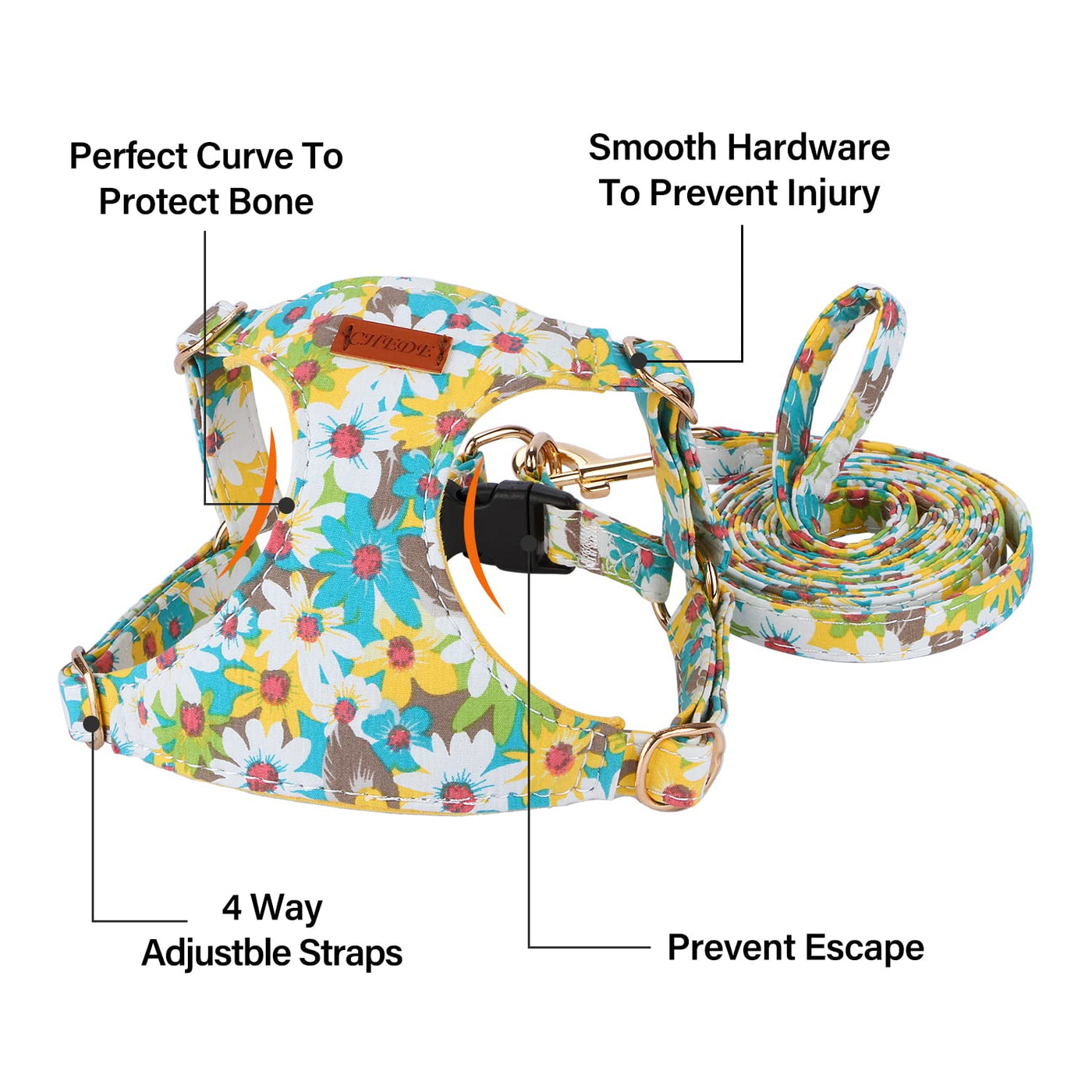 Chede No Pull Floral Pattern Dog Harness- Lightweight And Soft Dog Harness, Adjustable Small Dog Harness And Leash Set, With Dog Leash, Suitable For Puppy Small And Medium-Sized Dog