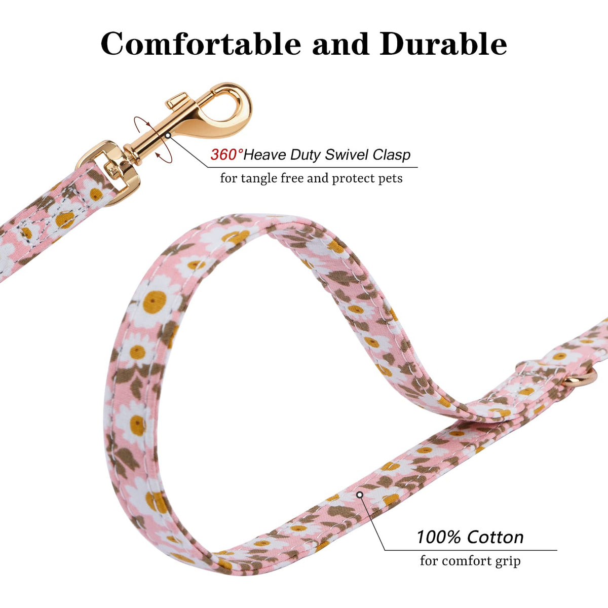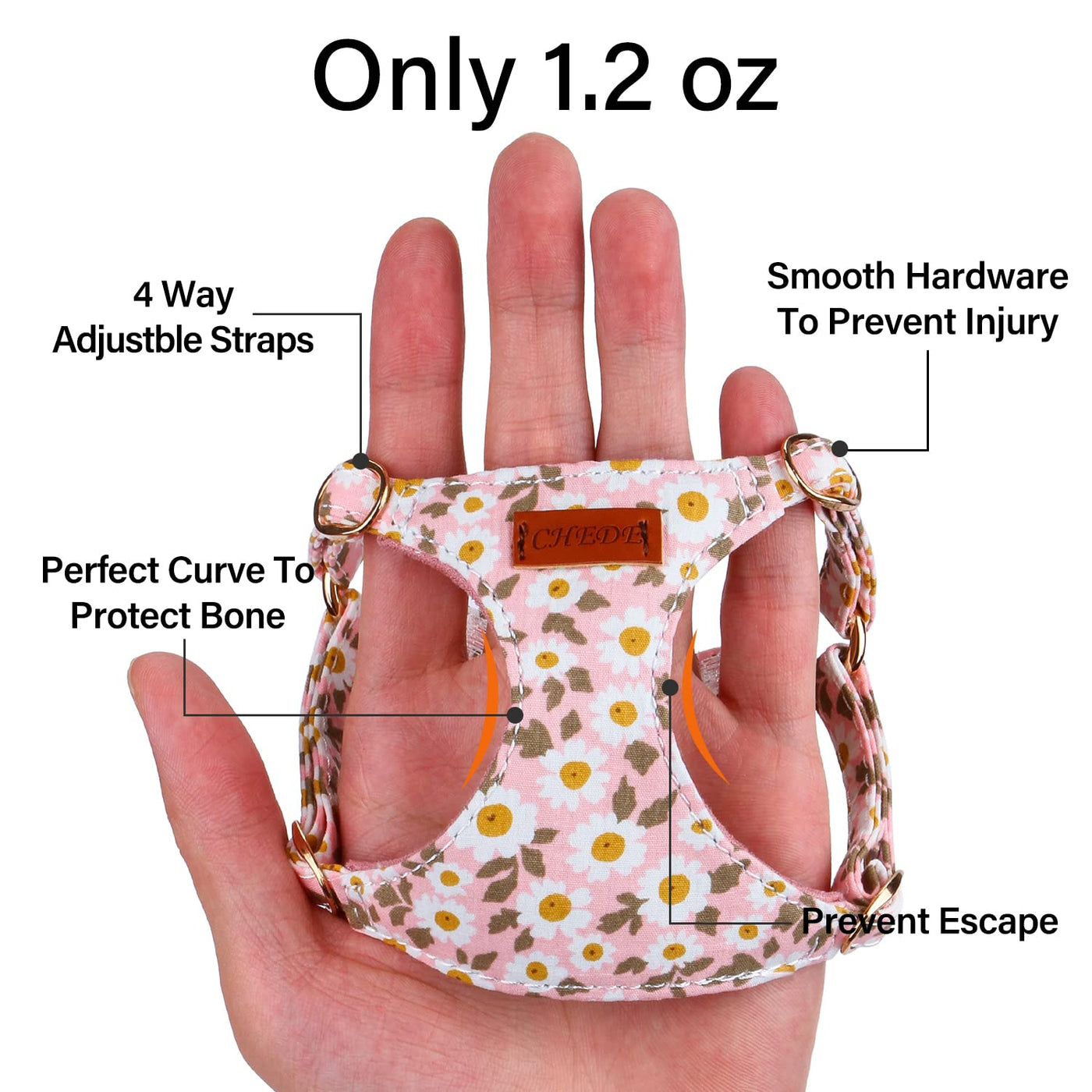 Chede No Pull Floral Pattern Dog Harness- Lightweight, Soft, Adjustable Small Harness And Leash Set, Suitable For Puppy Small And Medium-Sized Dog (Xs, Pink Daisy)