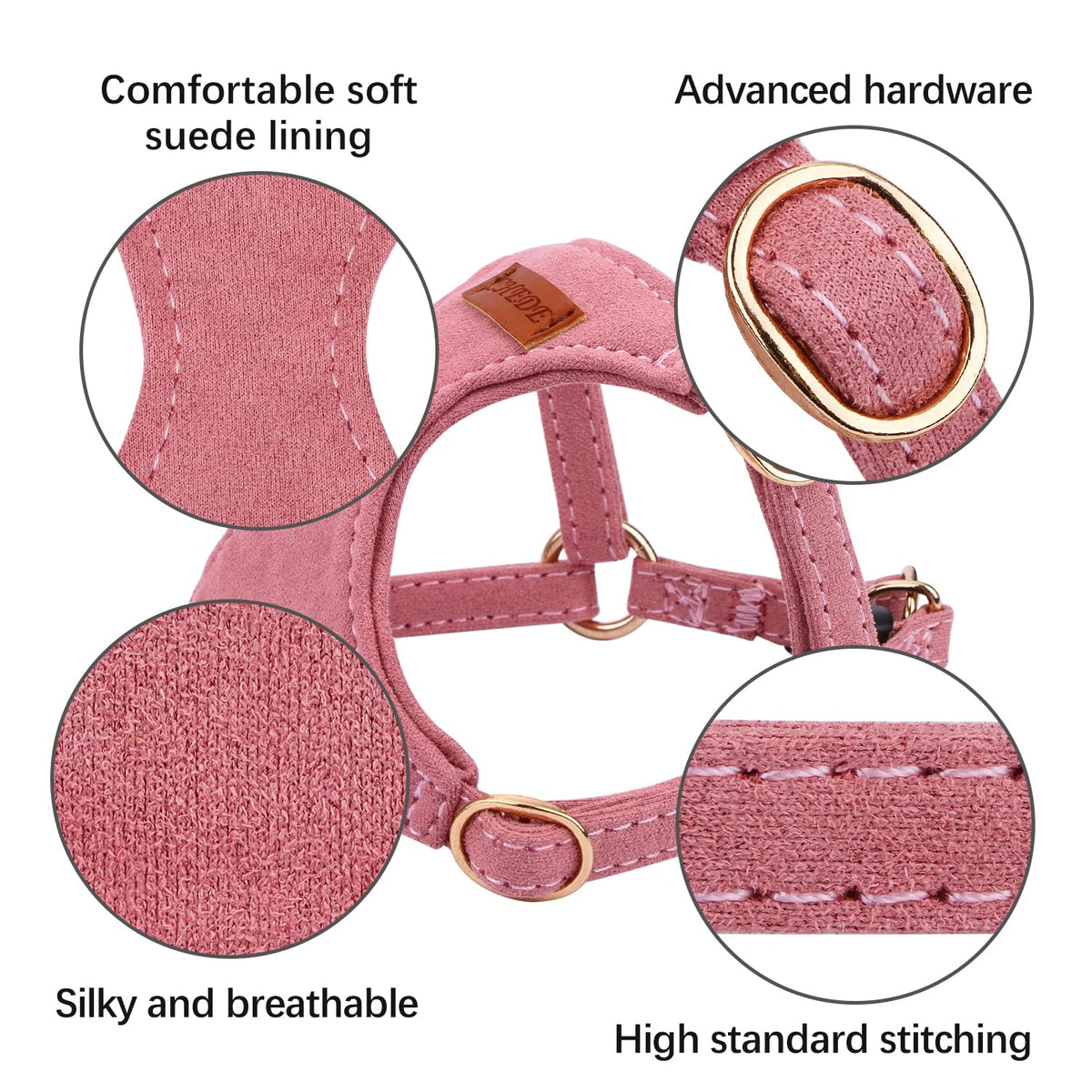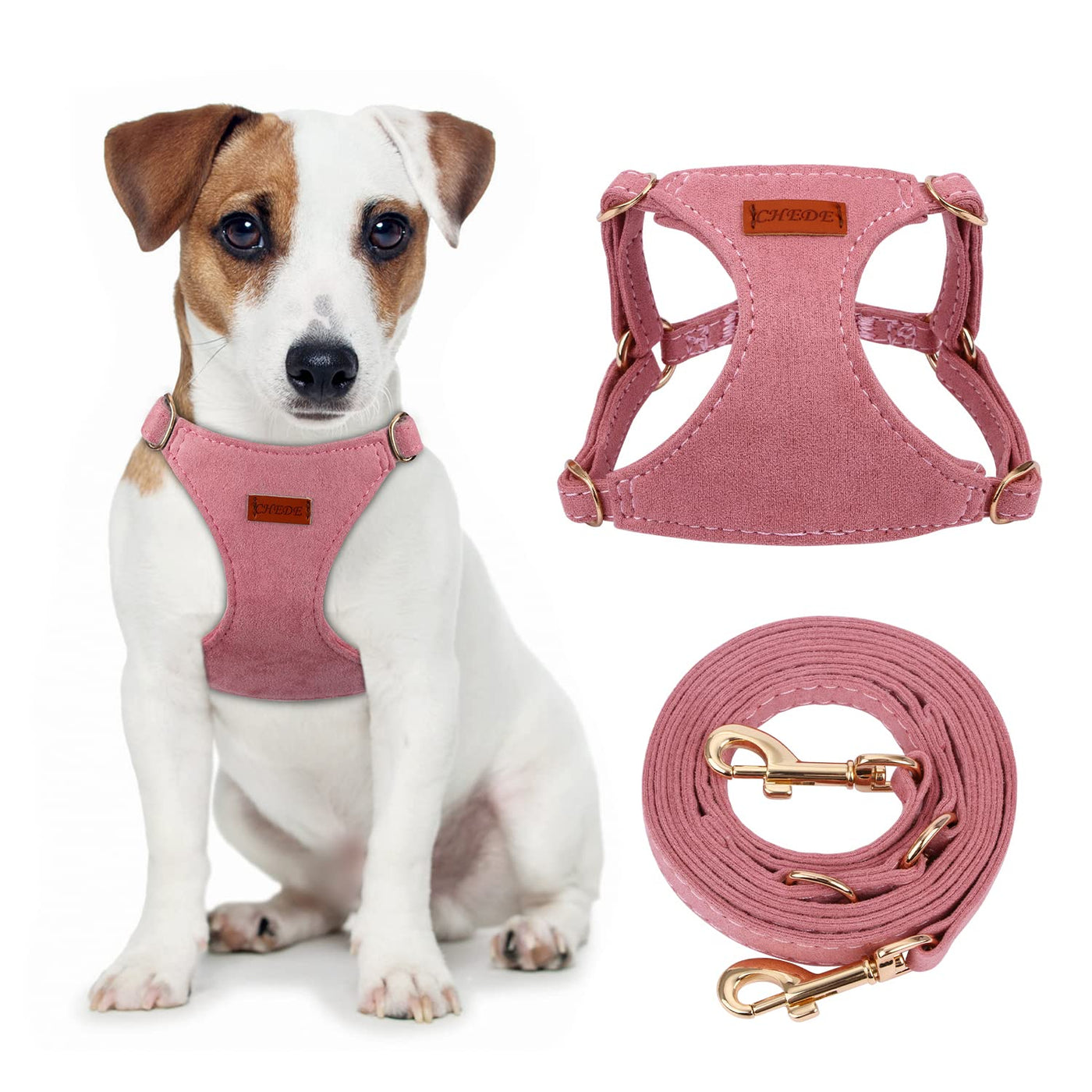 Chede No Pull Puppy Harness And Multifunction Dog Leash Set- 8 Colors Soft Adjustable No Choke Escape Proof Cute,Lightweight Pet Vest Harness For Small And Medium Dog (M, Antique Pink)
