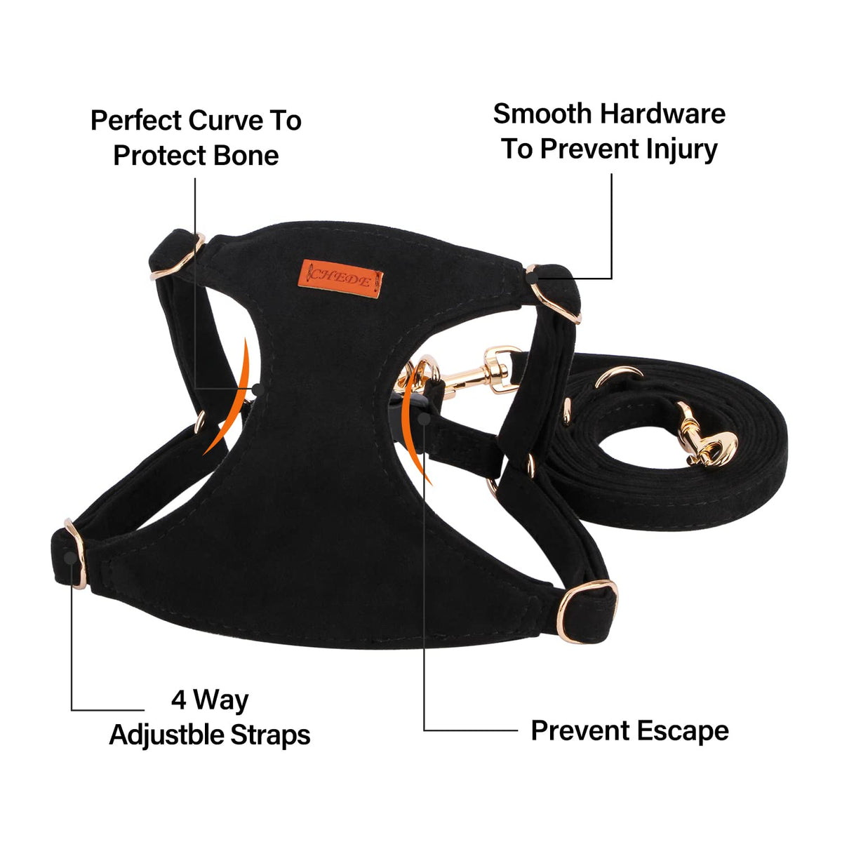 Chede No Pull Puppy Harness And Multifunction Dog Leash Set- 8 Colors Soft Adjustable No Choke Escape Proof Cute,Lightweight Pet Vest Harness For Small And Medium Dog (M, Black)