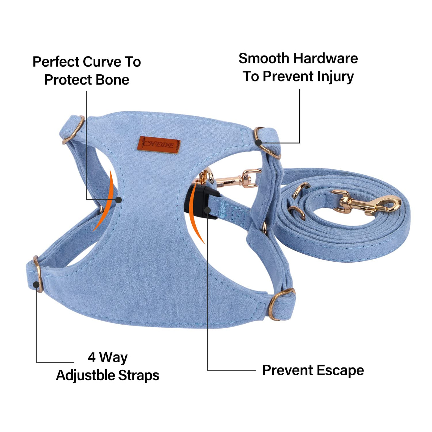 Chede No Pull Puppy Harness And Multifunction Dog Leash Set- 8 Colors Soft Adjustable No Choke Escape Proof Cute,Lightweight Pet Vest Harness For Small And Medium Dog (S, Blue)