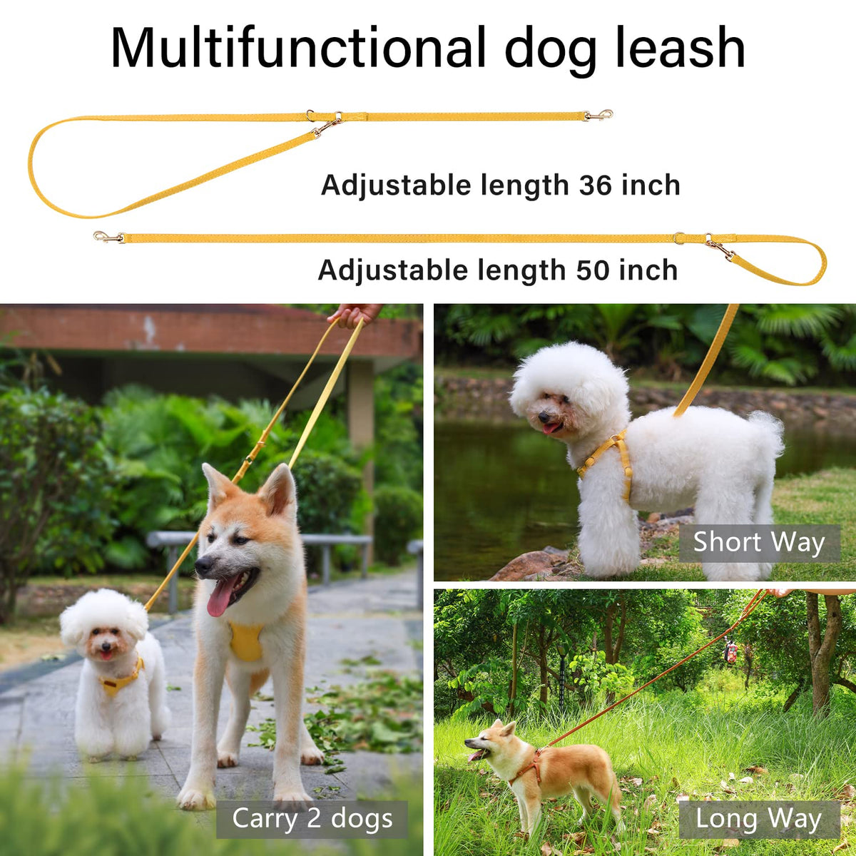 Q: Can I use the leash for two dogs simultaneously?A: Absolutely! The multifunctional dog leash that comes with the harness can be adjusted to two different lengths, making it ideal for walking two dogs at the same time.