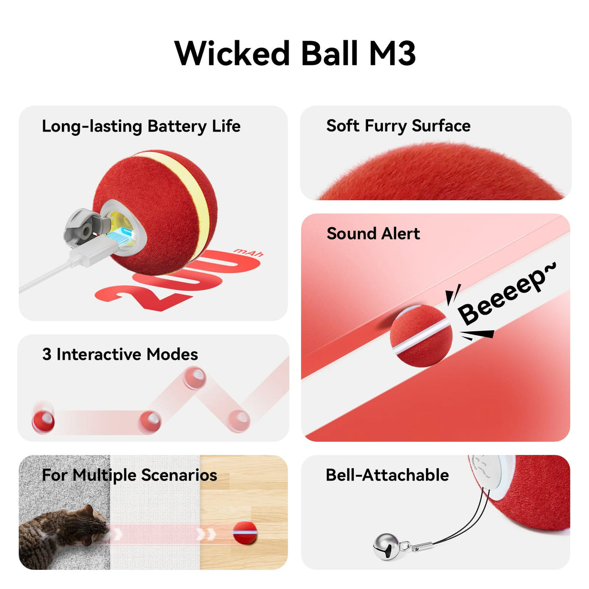 Cheerble Interactive Cat Ball Toy, Wicked Ball M3, Automatic Moving Smart Anti-Depression Pet Toy Fun Gift With Light