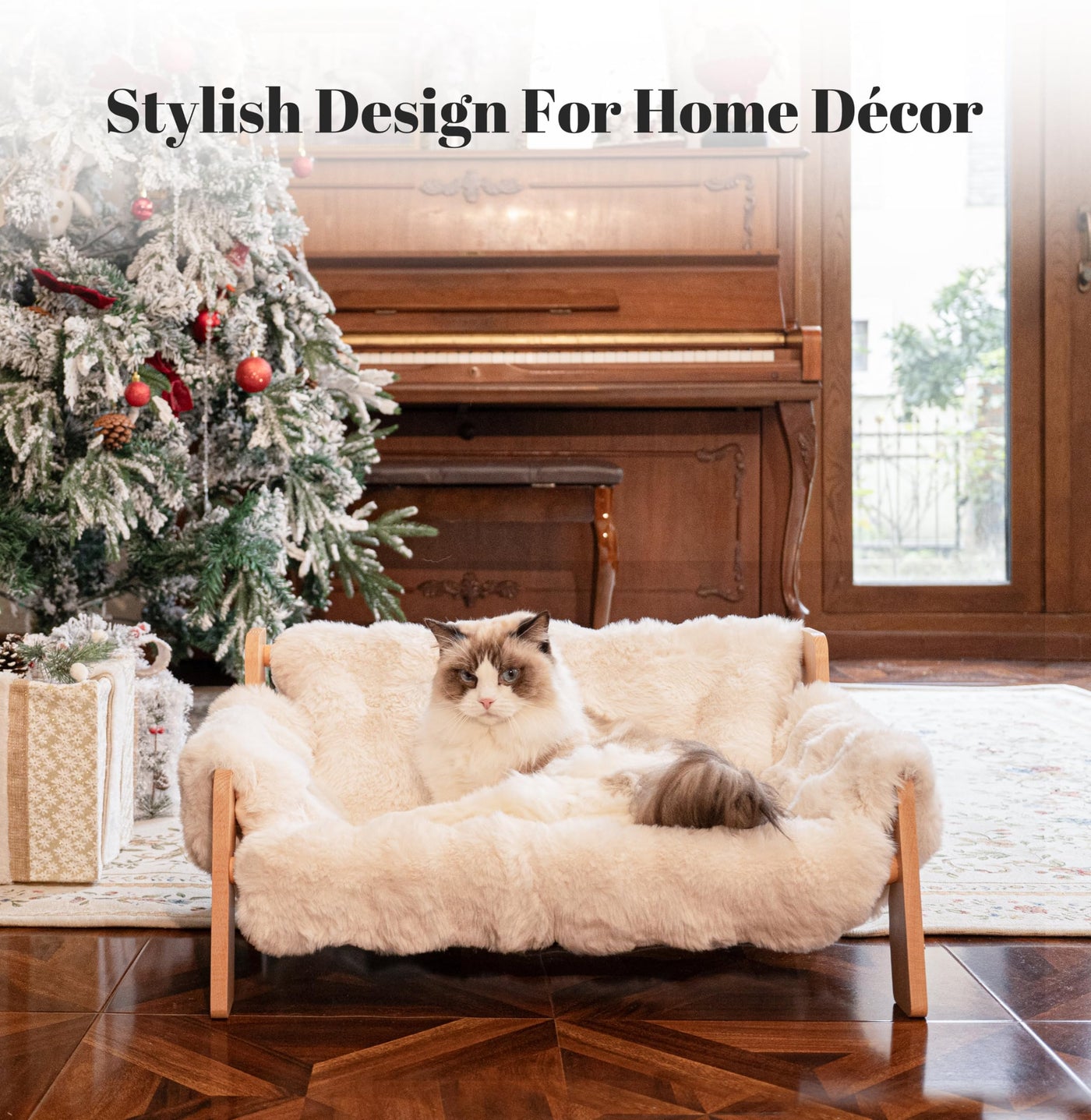 Elevated Design: In Order To Ensure Natural Air Circulation And Breathability, The Bottom Of The Cushion Is Suspended, Keeping The Cat Bed Surface Dry And Comfortable At All Times, And Also Allowing Cats To Stay Away From The Cold Ground. Furry Soft Cushion: The Soft Cushion Of The Pet Bed Is Detachable, Not Easy To Get Pet Hair On, Easy To Clean, And Machine-Washable. (Wash With Water Below 45C, Air Dry, And Avoid Drying With A Dryer.) Solid Wood Frame: The Frame Of The Cat Bed Is Made Of Beech Wood Imported From Germany. The Surface Is Coated With Wood Wax Oil. It Is Sturdy, Durable, Stable Structure And Capable Of Withstanding A Weight Of Up To 40 Pounds. Easy Installation: Package Comes With A Complete Installation Tutorial And Tools. It Can Be Easily Installed Within Just Ten Minutes. Cat Dog Universal: Measuring 27.2 Inches In Length, 18.6 Inches In Width And 11.8 Inches In Height, It Provides Sufficient Resting Space For Cats And Small To Medium-Sized Dogs.