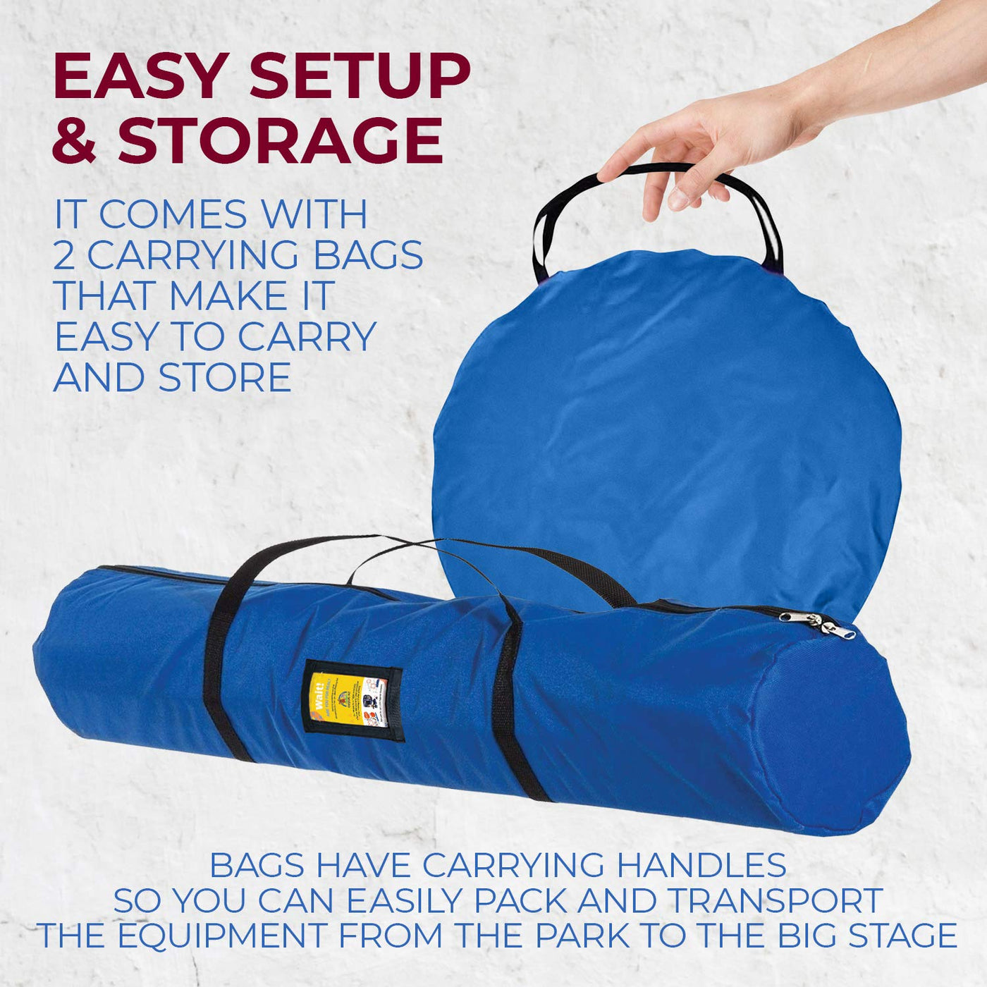INDOOROUTDOOR DOg AgILITY EQUIPMENT- The cheering Pet 5 Piece Dog Agility Training set will bring you hours of fun with your dog Keep your pup in shape no matter the weather Pop it up indoors or take it along to the park PREMIUM MATERIALS- Our dog agility equipment set is constructed with premium quality durable materials Made to last EASY SETUP & STORAgE: Setting up your obstacle training course is quick and easy It comes with 2 carrying bags that make it easy to carry and store Portable bags have carrying handles so you can easily pack and transport the equipment from the park to the big stage MULTIPLE EXcERcISE OPTIONS- Weave Poles Pause Box Tunnel Dog Jump and Hoop for a varied dog exercise routine gREAT gIFT IDEA- Young and old dog owners will love this dog agility training equipment Have an aspiring dog trainer in your life gift this premium set and get them started