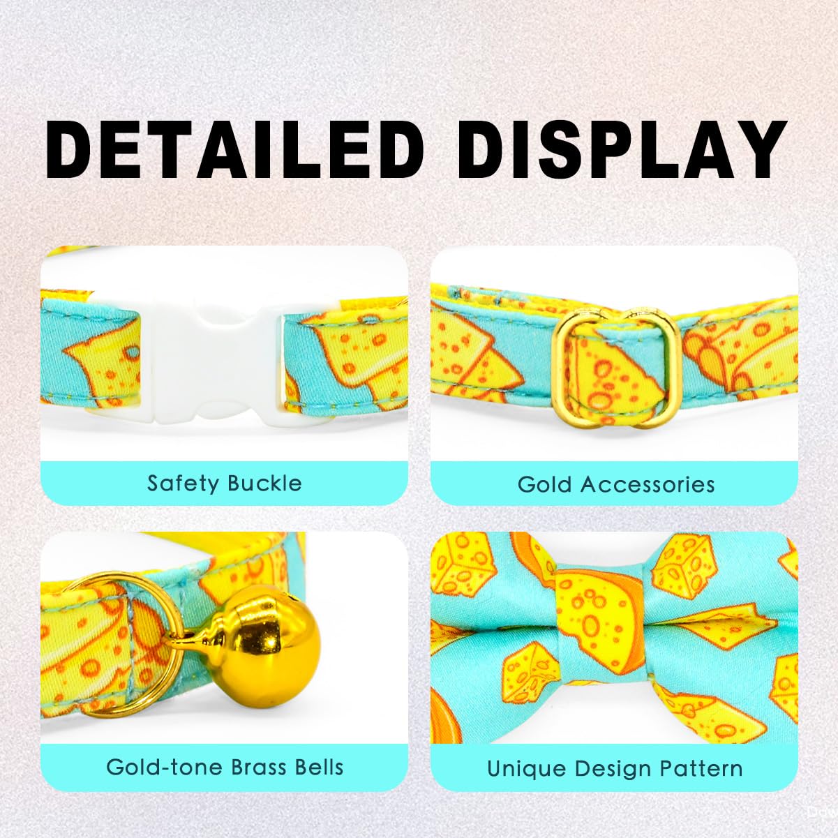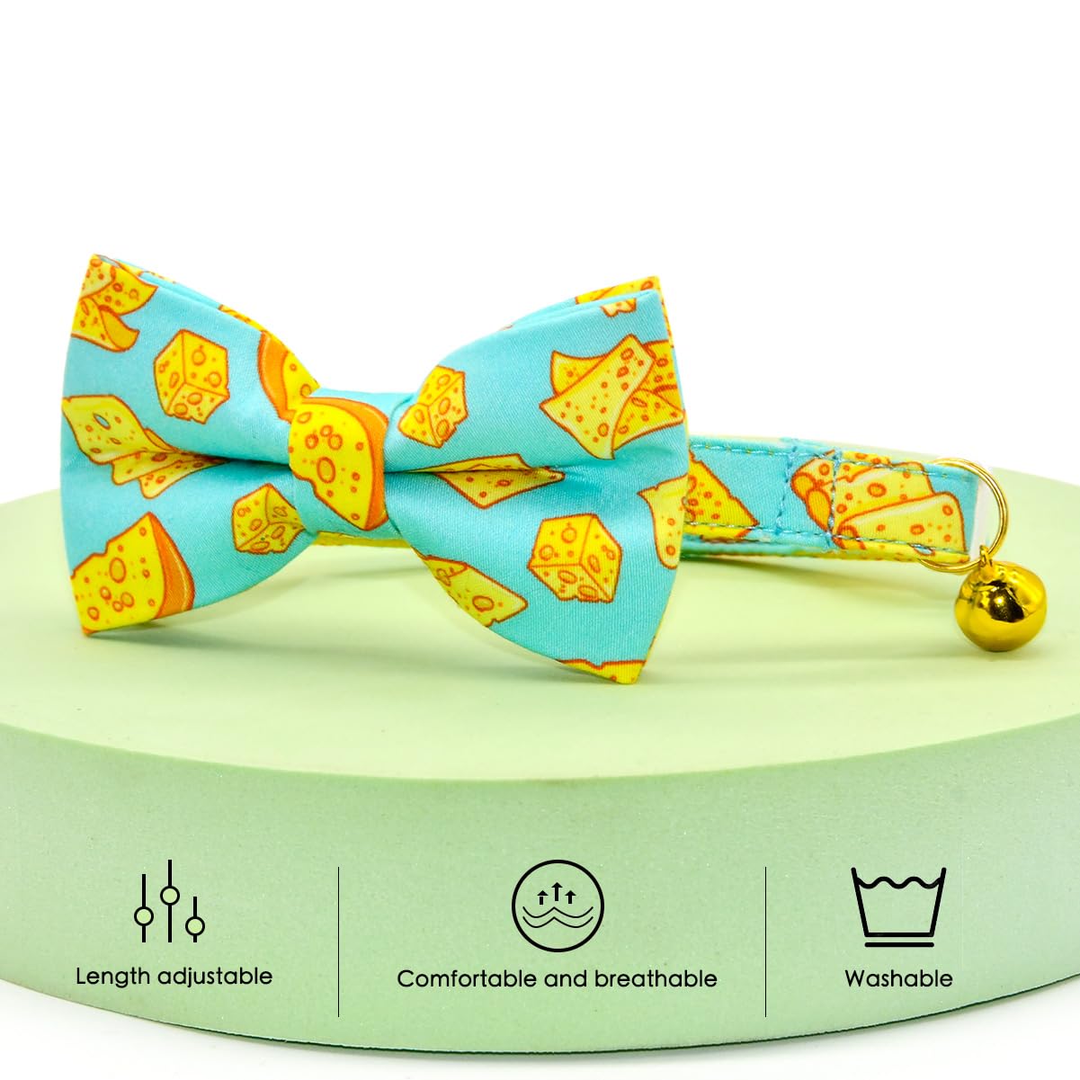 Cheese Cat Bow Tie Collar, Blue & Yellow Cheese Pattern, Wedding/Birthday/Festivals Cat Collar, Quick Release Safety Breakaway C