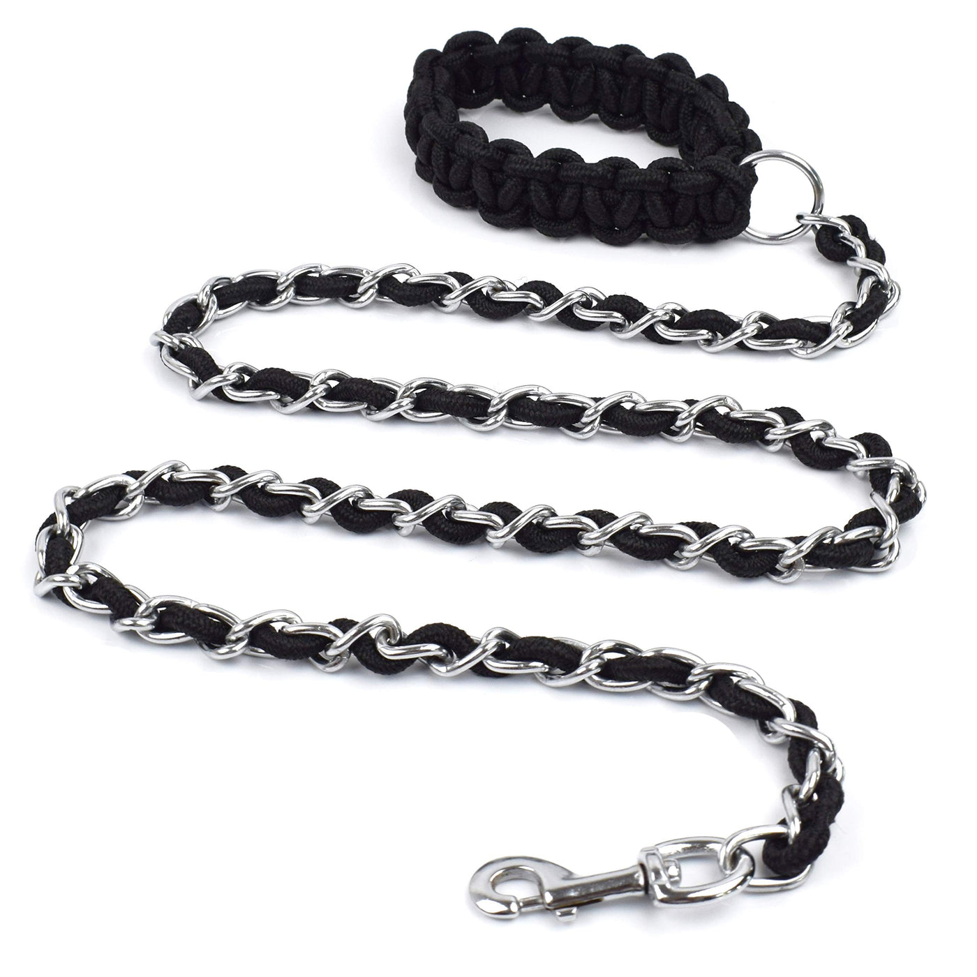 Anti Chew Dog Leash: The Metal Chain Makes You No Longer Worry About The Dog Biting The Leash 360 Rotate Clasp: 360 Degree Tangle-Free Heavy Duty Clasp Gives Your Dog Best Freedom Rope Handle: Soft Rope Handle For Amazing Comfortable, Just Enjoy The Feeling Of Walking With The Dogsdesigned For Small, Medium, Large Dogs, Puppies, Catsmaterial: Nylon Rope + Chrome Plated Metallength: 66 Inches (55Feet)Chain Width: L Size - 45 Mm S Size - 30 Mmweight: L Size - 15Lb (23Oz) S Size - 07Lb (11Oz)If There Is Any Problem, Or You Dont Like It At All 100% Guaranteed Replacement Or Refund