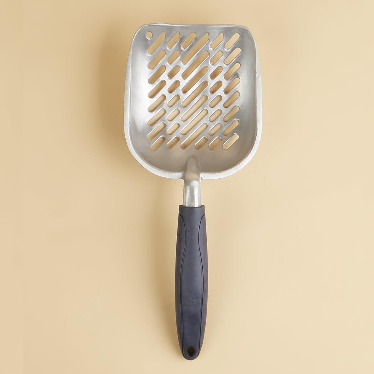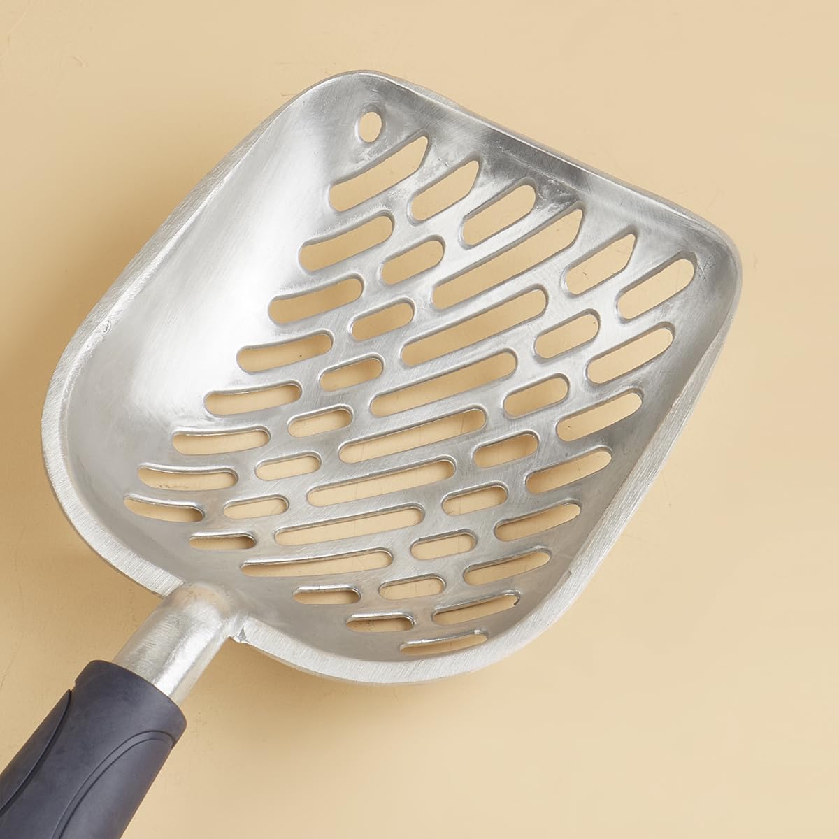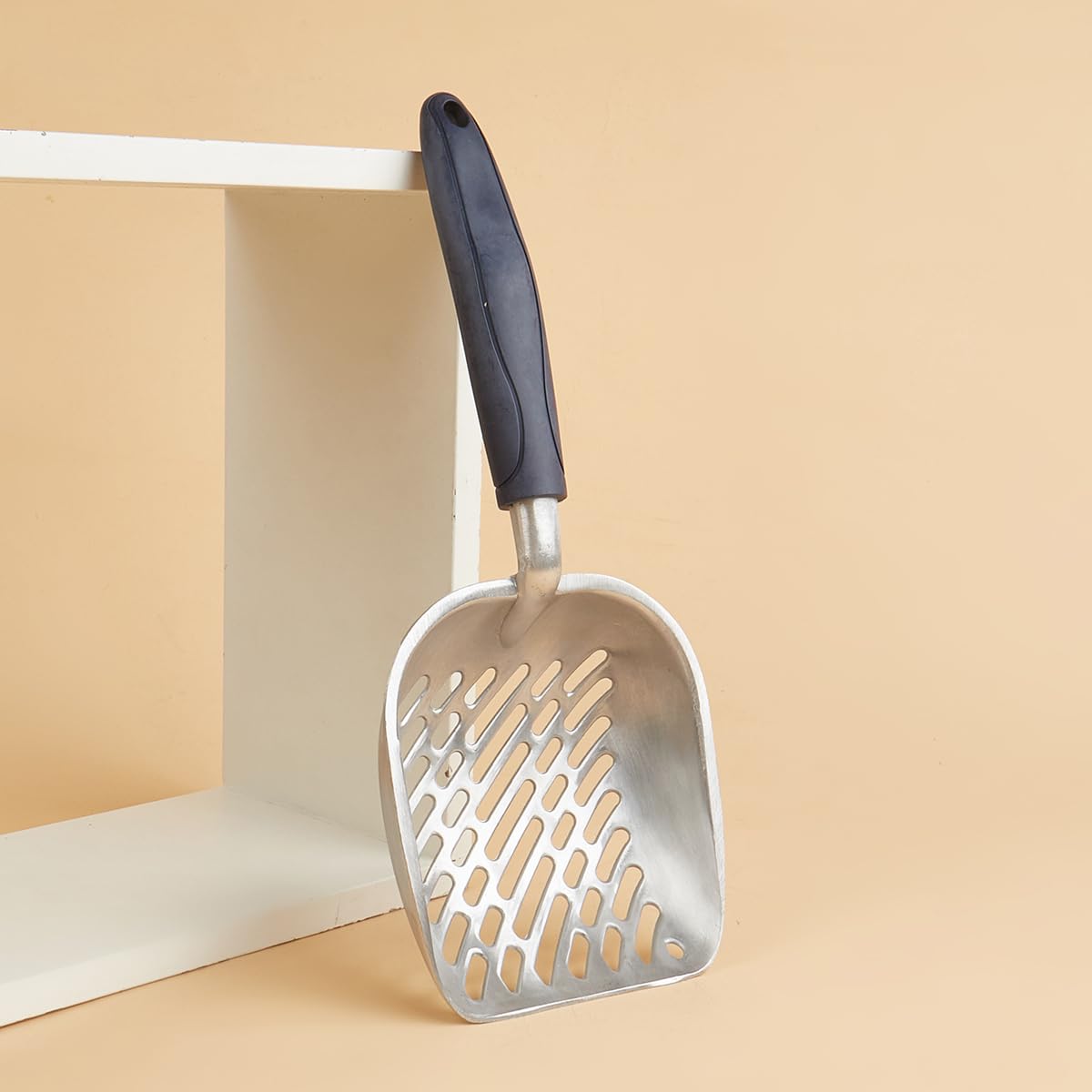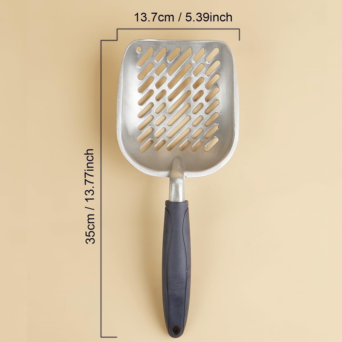 This Cat Litter Shovel Has A Lightweight Design And A Large-Sized Leading Edge Design. The Cats Litter Scooper Can Easily Clean Hard-To-Reach Corners And Kitty Messes In The Litter Box. The Smooth Pet Cats Litter Scoop Surface Will Be Safer After Deburr Treatment And Easy To Clean The Hardened Ergonomic Grip Is Covered With A Thick Layer Of Reinforced Rubber, Offering You A More Comfortable Touch And Allowing You To Filter The Cat Litter With A Simple Shake. The Litter Scooper Comes With Longer And Durable Metal Joint, It Avoids The Breaking Or Bending Of Rubber Grip. Ergo Rubber Handle Helps You Feel Comfortable And Easier To Scoop Cat Poop. Our Litter Scoop Owns 4 Non-Slip Tabs Preventing Fall-Off Of Handle. This Metal Litter Scoop Is Made Up Of Solid Cast Aluminum, Convenient And Light-Weighed, Suitable For Both Young And Elder People. With Electroplating Coating, Our Metal Cat Scooper Is Corrosion-Resistant, Long Time For Using.