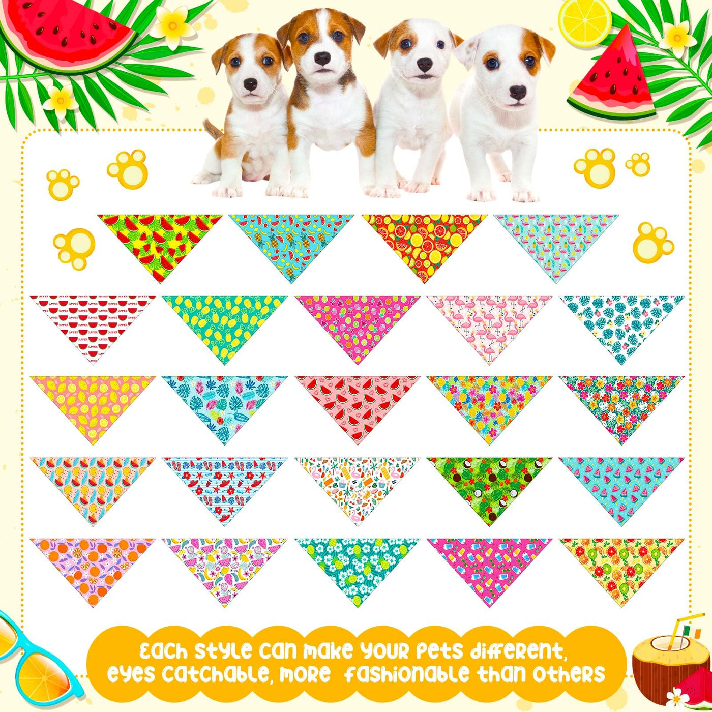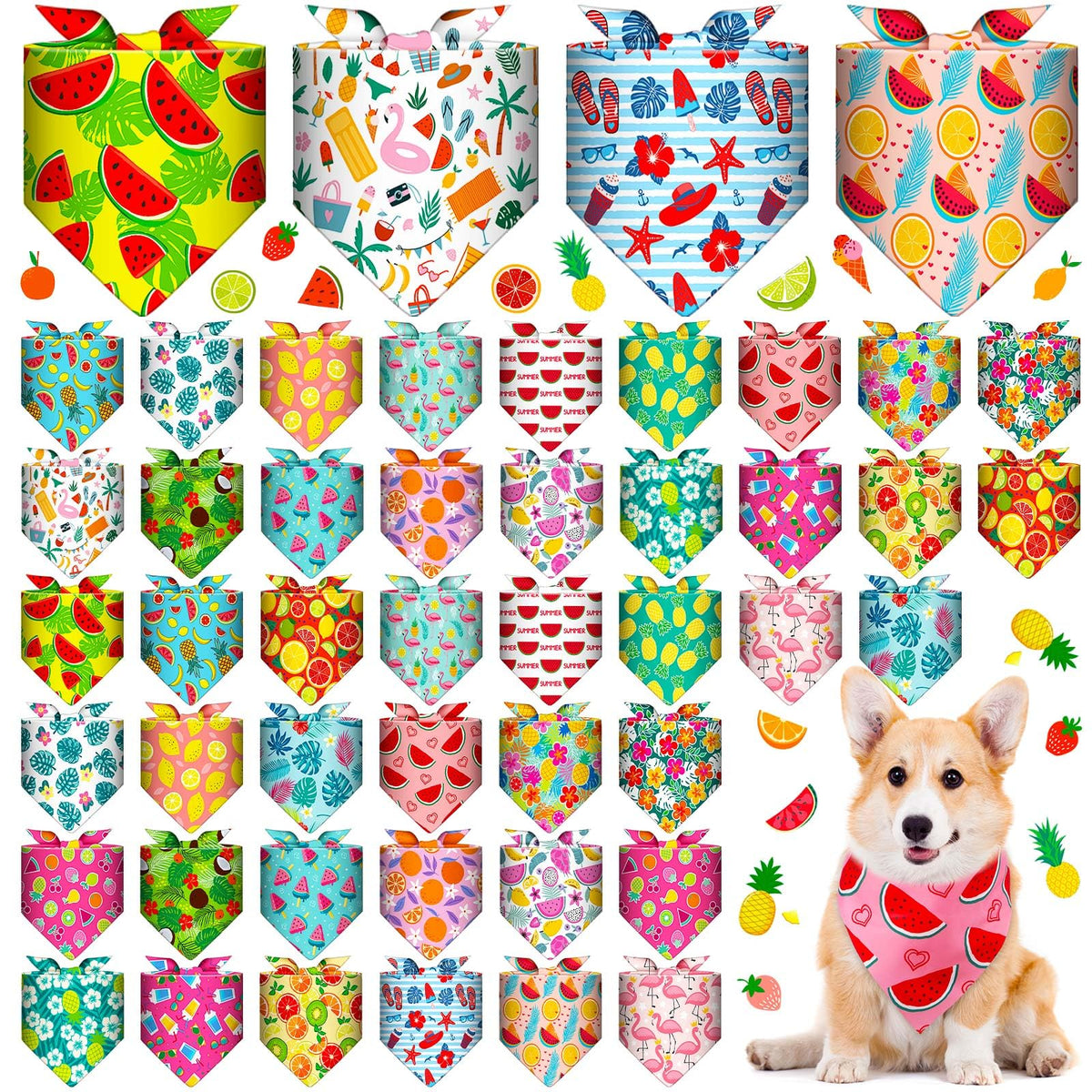 Chicingyou 48 Pcs Dog Bandanas Summer Bulk Hawaiian Fruit Dog Bandanas Puppy Triangle Scarf Bibs Washable Adjustable Pet Kerchie
