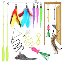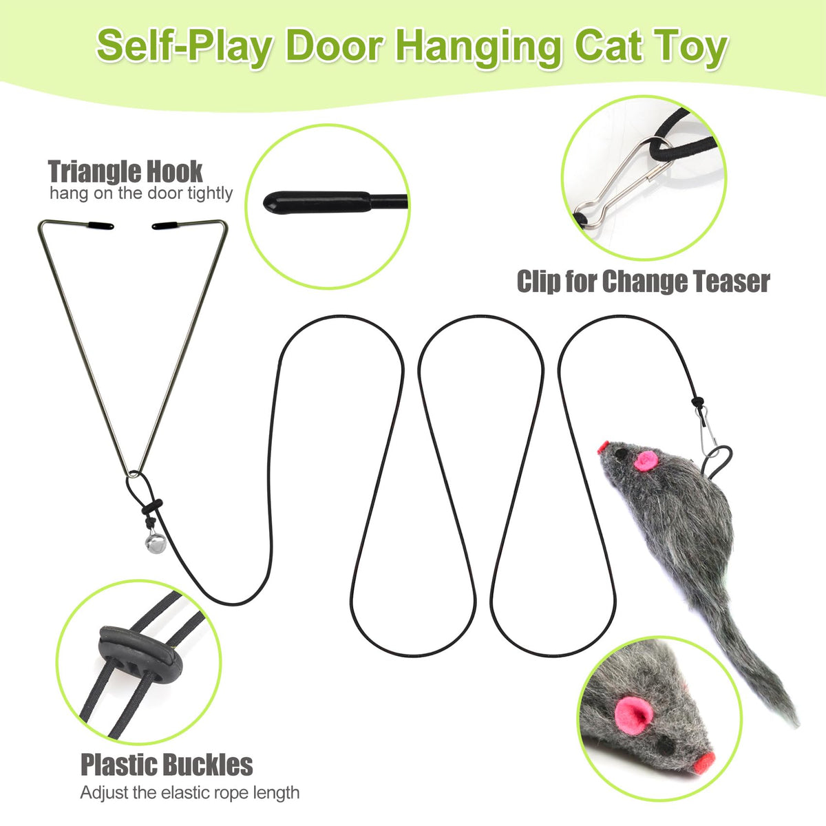Popular Cat Toys For Bored Indoor Adult Cats The 2 Cat Toy Wand Is A Great Interactive Cat Toy For You Teasing Your Cats And Bonding Relationship With Them. The 2 Hanging Cat Toy That 1Pc Can Be Fixed On The Door Frame, Doorknob And 1Pc Can Be Hanging On A Door Frame Or Handle, Combines String And Plush To Create An Irresistible Lure, Cat Will Play It By Self, It'S A Great Home Alone Cat Toy. Practical Cat Toy Set, 2Pcs Hanging Cat Toy+2Pcs Cat Wand Toy + 3Pcs Cat Toy Worm + 2Pcs Feather Cat Teaser Toy + 1Pc Replacement Elastic Rope. Cat Wand Toys Is Telescopic Rod Design, Adjustable From 15 Inches To 38 Inches. 1Pc Door Hanging Cat Toy Mouse With Triangle Hook, And 1Pc Plush Fish Toy With Sticker.